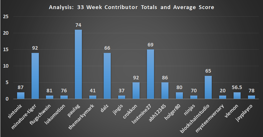 This is a weekly overview post of the Analysis category at @utopian-io. The report aims to provide insight into the topics covered, the scores provided, staff picks (if any), and a look at how the current week has fared against recent weeks gone by. Any other work taking place and my personal thoughts in relation to the category will also be included. If you have any suggestions for additional information that could be included in this report, please comment below. # <center>  </center> ----------------------------------- ## Previous reports ## #### 2018 [43](https://steemit.com/analysis/@abh12345/weekly-overview-of-the-analysis-category-week-43-2018-1540479136379), [44](https://steemit.com/utopian-io/@abh12345/weekly-overview-of-the-analysis-category-week-44-2018-1541089303152),[45-46](https://steemit.com/utopian-io/@abh12345/weekly-overview-of-the-analysis-category-week-45-46-2018-1542465400836), [47](https://steemit.com/utopian-io/@abh12345/utopian-io-weekly-overview-of-the-analysis-category-week-47-2018-1543095288963), [48-49](https://steemit.com/utopian-io/@abh12345/utopian-io-weekly-overview-of-the-analysis-category-week-48-49-2018-1544307843879), [50-51](https://steemit.com/utopian-io/@abh12345/utopian-io-weekly-overview-of-the-analysis-category-week-50-51-2018-1545398307454), [52-53](https://steemit.com/utopian-io/@abh12345/utopian-io-weekly-overview-of-the-analysis-category-week-52-53-2018-2019-1546611157783). #### 2019 [1](https://steemit.com/utopian-io/@abh12345/utopian-io-weekly-overview-of-the-analysis-category-week-1-2019-1547214045717), [2](https://steemit.com/utopian-io/@abh12345/utopian-io-weekly-overview-of-the-analysis-category-week-2-2019-1547820204539), [3](https://steemit.com/utopian-io/@abh12345/utopian-io-weekly-overview-of-the-analysis-category-week-3-2019-1548530887668), [4](https://steemit.com/utopian-io/@abh12345/utopian-io-weekly-overview-of-the-analysis-category-week-4-2019-1549034519267), [5-6](https://steemit.com/utopian-io/@abh12345/utopian-io-weekly-overview-of-the-analysis-category-week-5-6-2019-1550150536807), [7-8](https://steemit.com/utopian-io/@abh12345/utopian-io-weekly-overview-of-the-analysis-category-week-7-8-2019-1551381188746), [9-10](https://steemit.com/utopian-io/@abh12345/utopian-io-weekly-overview-of-the-analysis-category-week-9-10-2019-1552568232752), [11-12](https://steemit.com/utopian-io/@abh12345/utopian-io-weekly-overview-of-the-analysis-category-week-11-12-2019-1553776601655), [13-14](https://steemit.com/utopian-io/@abh12345/utopian-io-weekly-overview-of-the-analysis-category-week-13-14-2019-1555092065082), [15-16](https://steemit.com/utopian-io/@abh12345/utopian-io-weekly-overview-of-the-analysis-category-week-15-16-2019-1556282933249), [17-18](https://steemit.com/utopian-io/@abh12345/utopian-io-weekly-overview-of-the-analysis-category-week-17-18-2019-1557485477754). -------------------------- ## Analysis contributions summary ## #### Week 19: May 9th - 15th inclusive - 4 contributions, 4 scored, 4 different authors - An average score for the week of **78** - An average of **18** comments per contribution ## Contributions ## Contributor | URL | Score | Comments - | - | - | - paulag| [New Steem Accounts - April](https://steemit.com/utopian-io/@paulag/april-19-new-steem-account-report-1557401925881) |71 | 27 dalz| [New Steemians](https://steemit.com/utopian-io/@dalz/searching-for-new-steemians-april-2019--activities-balance-analysis-and-a-small-gift-from-me) |55 | 8 miniature-tiger| [Steem earnings distribution](https://steemit.com/utopian-io/@miniature-tiger/steem-analytics-is-the-distribution-of-steem-earnings-changing-over-time-1557585935238) |92 | 8 crokkon| [Drugwars - bots/scripts](https://steemit.com/utopian-io/@crokkon/are-there-still-bots-and-scripters-on-drugwars-1557592032910) |94 | 29 ## An excellent week this week for contribution numbers in comparison to the last couple of months and I'm pleased to report the standard has remained high. Kicking of this weeks snippet reviews is the monthly report from 'paulag' highlighting new account numbers and activities of those accounts. Are they just wallets, or do their plan to engage further on Steem? > 97.61% of new accounts set up, were set up with the newly introduced account creation tokens. [source](https://steemit.com/utopian-io/@paulag/april-19-new-steem-account-report-155740192588) # > 75% of accounts set up in April have received delegation. [source](https://steemit.com/utopian-io/@paulag/april-19-new-steem-account-report-155740192588) # The above comments from the report highlighting the extensive use of Account Claims and creations, as well as delegation for three quarters of new accounts, however: > Although there are many new account creation services, such as Steem-ninja, we have yet to see a large shift in the % of accounts set up by Steemit Inc v’s others. [source](https://steemit.com/utopian-io/@paulag/april-19-new-steem-account-report-155740192588) # The hope is that in time it will be the apps and other accounts offering their tokens for account creation (as well as a host of on-boarding materials and advice). 'dalz' has also looked an new accounts on a couple of occasions over the past months and also includes a 'small gift' when the most active accounts have been found. In his report, one of the conclusions made is: > there are a lot of accounts with zero posts but with some STEEM in the account. People are using the accounts only as a wallet. # Or perhaps they are having a good look around before they begin :) 'miniature-tiger' has again contributed and this time he took a look at Steem earnings in an attempt to analyse if the distribution of earnings is changing over time. With a previous analysis on this subject 6 months prior, it was easy to conclude that distribution had not changed much, and we are still in a place where: > .. a small percentage of accounts [are] garnering a large proportion of the available rewards. [source](https://steemit.com/utopia