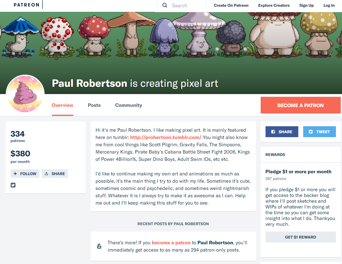 https://media.giphy.com/media/vStNYVQr38cA8/giphy.gif [seizure warning, flashing] So While leaving a comment for @rok-sivante I found some INCREDIBLE artwork by Paul Robertson! I remember that @jonny-clearwater has always made Pixel Art competitions and posts and @fyrstikken always expresses the wish to both create new Rick and Morty (Like Bushworld Adventures Fan Art Style) and to Sponsor new great content. Even the late great @adept had setup @steempixels for our pixel entertainment, similar to pixelcanvas.io where you can make massive pixel art collaborative art. So I believe PIXEL ART like THIS is a GREAT choice for Steem, we can hire artists to create animated Pixel art LIKE this artwork by Paul Robertson and we can make it STEEM related and the artwork will be shared wide and far, and jkust like Paul Robertson made a lot of this artwork to promote Adult Swim, we can use it to promote Steem! So this is what triggered all of this, I had a memory of this Pixel Art Adult Swim Bumper Advertisement for Rick and Morty and here it is in Video format https://www.youtube.com/watch?v=vPjHdgl36PI and here it is in Animated GIF form https://media.giphy.com/media/l0ExiEQMm9uBXcPHq/source.gif And is more of Paul Robertson's Fantastic colorful psychedelic pixel artwork that I WISH we could have as Steemit Exclusive content! Imagine if this guy came to STEM and made a few STEEM Pixel Animations, he would get thousands of dollars per post! https://78.media.tumblr.com/6094d5863f9d2fa79f7a14294f7c9beb/tumblr_oo2f4fwOaD1qhccbco1_250.gif and I was looking for the image of Beth as a goddess in Pixel art but I found THIS by the same artists and that is what set this journey in motion. https://i.pinimg.com/originals/7b/be/9c/7bbe9c7a91c3fb303f5875c39bc9f65a.gif https://media.giphy.com/media/26gYOIXPxgmTIMUy4/source.gif DUDE this is ALL by accident I found ALL of these by accident I had a CREATIVE brteakthrough for leaving my COMFORT ZONE just like @rok-sivante expressed in his recent post https://steemit.com/life/@rok-sivante/the-power-of-a-few-words-and-stepping-out-of-the-comfort-zone-to-serve And it is in this post that I started sharing this great Animated Pixel artwork of Paul Robertson: http://img1.joyreactor.com/pics/post/Paul-Robertson-artists-gif-pixel-art-2347889.gif So it is obvious that Paul Robertson is an AMAZING Pixel Artist, I wonder if we can PAY him to make us custom STEM pixel animation art , or maybe pay someone like him to do what hes doing? MUST be an option! Here is what Google says about him:  Here is his Tumblr account page which I believe he uses as one of his main sites http://probertson.tumblr.com/ And here is his wikipedia https://en.wikipedia.org/wiki/Paul_Robertson_(animator) And here is something important to reach him with, his PATREON and imagine when we make our OWN patreon for STEEM! In the meantime we can get him on steem creating his art for STEEMPOWER https://www.patreon.com/probertson  I will personally help pay to commission him to create STEEM and EOS Graphene promotional art, AND I will pay him to TEACH artists to do this sort of work, here on @surfyogi 's @artzone like @artzanolino who could be trained or @web-gnar as well, they could be trained in this pixel art work and get paid VERY well! I just commented oin his latest post with my email for him to respond to, telling him I have PAID jobs for him, similar to the Adult Swim gig he got, I would personally pay him good money to make something for STEEM! https://twitter.com/synergysponsor/status/985691215193501696  I want THIS following animation pixel art but I want it relabeled "Steem witness" and "steempower" and I want another factory looking machine labeled "Internal Market" and I want basically a big animated pixel art Factory but with all the parts labeled as if it was the steem blockchain! Imagine this could be a steem witness node visualized https://media.giphy.com/media/xTiTnL9OBPSfcQYexG/giphy.gif and the Upvotes could be coming out of it lolol Holy shitim addicted to these things now and they look SO COOl on steem I KINOW these are EXPENSOIVE and TIME consuming tedious work, but I wish we could raise money to pay someone in upvotes to make a Steem related pixel art animation like this! :D like @web-gnar may be able to help me work on something like this but I KNOW this is tedious expensive work :D we need to do it for fun but also for AMAZING memetic payout! The meme is SO STRONG here! https://media.giphy.com/media/NJrjzTO5a0A5W/giphy.gif We NEED to show Artists that STEEM is a place where they can Earn Money for their art AFTER they show Allegiance to steem in its infantile stages by promoting steem through their artworkl! I tell EVERY artist this, that you can't expect steemians to support your random art no matter how good YOU think it might be, but that you MUST use your artistic talent to make some sort of Steem related PROMOTION from a song about steem to a Hand drawn logo, or just a logo included IN your regular artwork, WHATEVER it is, you just have to include steem in your art somehow in the beginning, and then AS you keep posting and show you support steem WITH your artwork itself, than you can just post whatever non stem related art you make and you're followers will know you have helped steem and will keep upvoting you! Just make sure that if you do this strategy you keep up a steem related piece of artwork at LEAST once a month and is that too much to ask?  ( Deviant Art page of Paul Robertson https://probertson.deviantart.com/ ) Too many artists are full of themselves are are "Above" promoting a company even if it is a decentralized blockchain that helps all of humanity, they think they are too good for that and demand they get paid BEFORE the artwork is finished, like spoiled brats :D NO you get paid AFTER you deliver the work just like in the REAL WORLD! And if you THEN prove your talent in the creation of STEEM related art, THEN you can MAYBE get a commission to do MORE steem related 