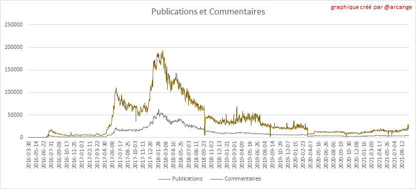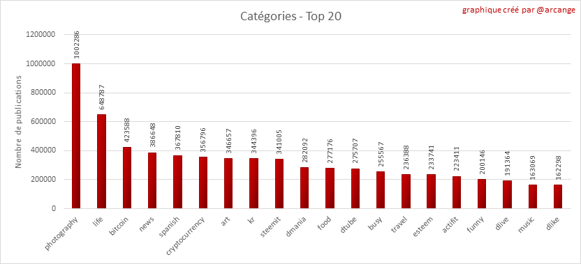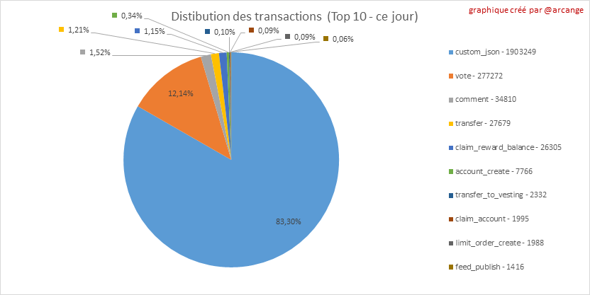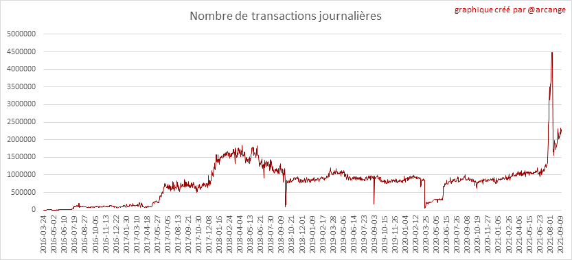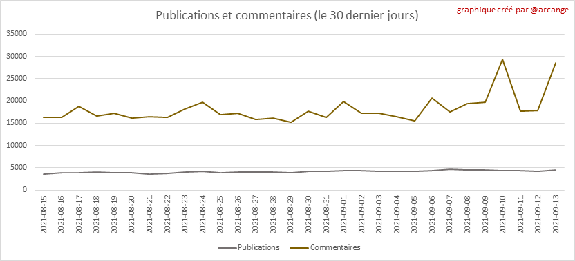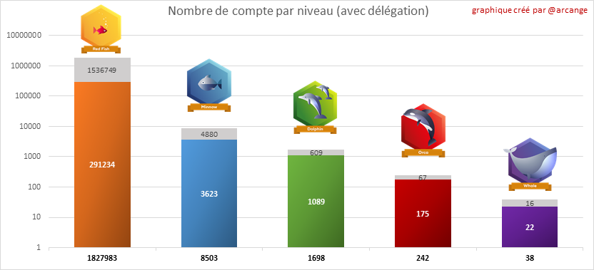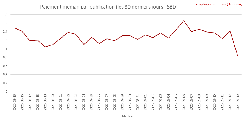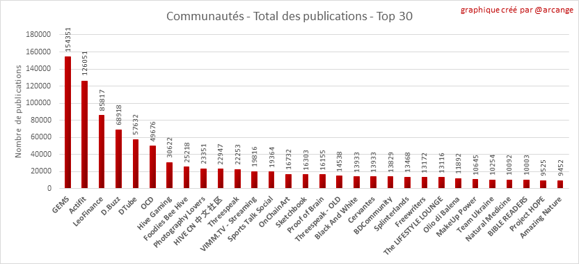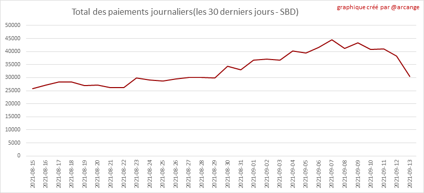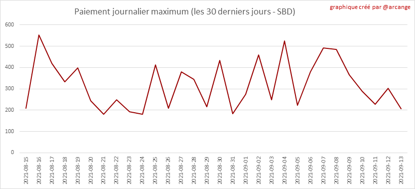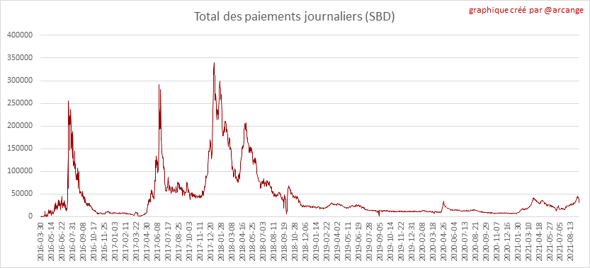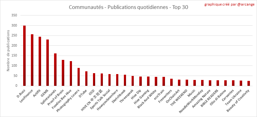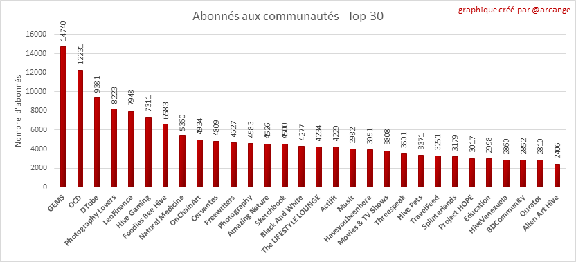 <center></center> ### Bienvenue dans le rapport d'analyse journalier de la blockchain Hive. Toutes les informations présentées dans ce rapport sont basées sur les données collectées dans la blockchain jusqu'au 13-09-2021 à minuit, heure UTC. L'objectif de ce rapport est de vous fournir une vision claire de ce qui se passe quotidiennement dans la blockchain Hive. <sub> This post is translated in English - [here](/statistics/@arcange/hive-statistics-20210913-en)</sub> <sub> Este post está traducido al español - [aquí](/statistics/@arcange-es/hive-statistics-20210913-es)</sub> <sub> Dieser Beitrag ist ins Deutsche übersetzt - [hier](/statistics/@arcange-de/hive-statistics-20210913-de)</sub> ### 1. Nouveaux utilisateurs  Ce graphique montre le nombre d'utilisateurs nouvellement inscrits sur la blockchain et combien d'entre eux sont devenus actifs. Nous voyons que beaucoup de comptes sont enregistrés, mais jamais utilisés. Ce graphique est un peu dynamique! Un utilisateur peut s'inscrire un jour et ne devenir actif que quelques jours plus tard. Par conséquent, le nombre d'utilisateurs actifs à une date donnée peut varier d'un jour à l'autre. ||| |-|-| ||| Ces deux graphiques montrent qui a créé de nouveaux comptes le dernier jour et le nombre total de comptes enregistrés. La ligne rouge indique combien d'entre eux ont été actifs au moins une fois (par utilisateurs actifs, j'entends ceux qui ont fait au moins une publication, un commentaire ou une vote). Ils sont inclus même s'ils deviennent inactifs plus tard. ### 2. Utilisateurs actifs ||| |-|-| |||  Ces graphiques montrent l'activité des utilisateurs dans le temps et de manière plus détaillée pour les 30 derniers jours. Dans ces graphiques, les "utilisateurs actifs" sont ceux qui ont effectué au moins une transaction sur la blockchain, quelque soit le type de transaction. Le dernier graphique est un résumé mensuel des utilisateurs actifs. Attention en interpretant la valeur de la dernière colonne qui peut être largement inférieure si la fin du mois n'a pas encore été atteinte. ### 3. Applications  Ce graphique montre quelles applications sont les plus utilisées pour publier des articles et des commentaires. Veuillez noter qu'un même utilisateur peut utiliser plusieurs applications différentes.  Ce graphique montre quelles sont les applications qui génèrent le plus d'activité (operations custom_json) sur la blockchain. ### 4. Publications et commentaires ||| |-|-| ||| Ces graphiques montrent l'évolution des publications et des commentaires pour toute la durée de vie de la blockchain et pour les 30 derniers jours. ### 5. Curation ||| |-|-| ||| Ces graphiques montrent l'évolution de la curation (votes positifs) depuis la création de la blockchain et pour les 30 derniers jours. ### 6. Transactions journalières  Ce graphique montre le nombre de transactions quotidiennes. Cela vous donne une idée de l’ensemble de l’activité sur la blockchain.  Ce graphique montre la répartition des 10 principaux types de transactions par nombre d'opérations effectuées sur la blockchain. ### 7. Communautés et catégories  Ce graphique montre les communautés avec le plus d'abonnés. ||| Ces graphiques montrent les communautés les plus actives en termes de publications depuis la leur création et pour le jour passé. ||| |-|-| ||| Ce graphique montre les catégories les plus utilisées pour les publications depuis la création de la blockchain et ce dernier jour. ### 8. Distribution ||| |-|-| ||| Ce graphique montre la répartition de la réputation entre les utilisateurs. Les comptes dont la réputation est inférieure à 25 ont été supprimés pour que le graphique reste lisible.  Ce graphique montre le nombre d'utilisateurs en fonction de leur Hive Power. Le graphique de gauche montre la répartition sans tenir compte des délégations données ou reçues. Le graphique de droite prend en compte la délégation en additionant les délégations reçues et en soustrayant les délégations données. La partie grise de chaque colonne indique le nombre de comptes inactifs (ceux qui n'ont plus publié, commenté ou voté depuis 30 jours). ||| |-|-| ||| Ce graphique montre la distribution de Hive Power cumulée par niveau de compte. Le graphique de gauche montre la répartition sans tenir compte des délégations données ou reçues. Le graphique de droite prend en compte la délégation en additionant les délégations reçues et en soustrayant les délégations données. La partie grise de chaque colonne indique le Hive Power inutilisé par les comptes inactifs (voir la définition d'inactif ci-dessus). Au-dessous de chaque colonne, vous verrez également le ratio par rapport au total de Hive Power existant. ### 9. Evolution des paiements  Ce graphique montrent la récompense maximale payée sur un message (ou un commentaire) au cours des 30 derniers jours. ||| |-|-| ||| Ces graphiques montrent le total des paiements distribués (publications et commentaires) pour chaque jour. ||| |-|-| ||| Ces graphiques montrent les paiements moyens et médians par publication au cours des 30 derniers jours. --- J'espère que vous trouverez ces statistiques utiles. Si vous souhaitez voir des statistiques différentes, n'hésitez pas à me laisser un commentaire. Vos remarques sont plus que bienvenues. --- <center> ### Découvrez mes applications et services <a href="/hive/@hive.engage/stay-connected-with-your-hive-audience-and-catch-attention"><img src="https://i.imgur.com/GiNJqlm.png"></a><a href="/@hivebuzz"><img src="https://i.imgur.com/B4UTun2.png"></a><a href="/@hivesql"><img src="https://i.imgur.com/EPN8RW6.png"></a><a href="/hive/@arcange/introducing-hive-account-recovery"><img src="https://i.imgur.com/6TWeW7V.png"></a><a href="/@hive.autoclaim"><img src="https://i.imgur.com/ih2pEOw.png"></a></center> <center> ### [Votez pour moi comme Witness ](https://hivesigner.com/sign/account-witness-vote?witness=arcange&approve=1)