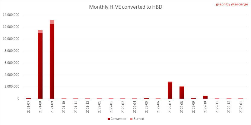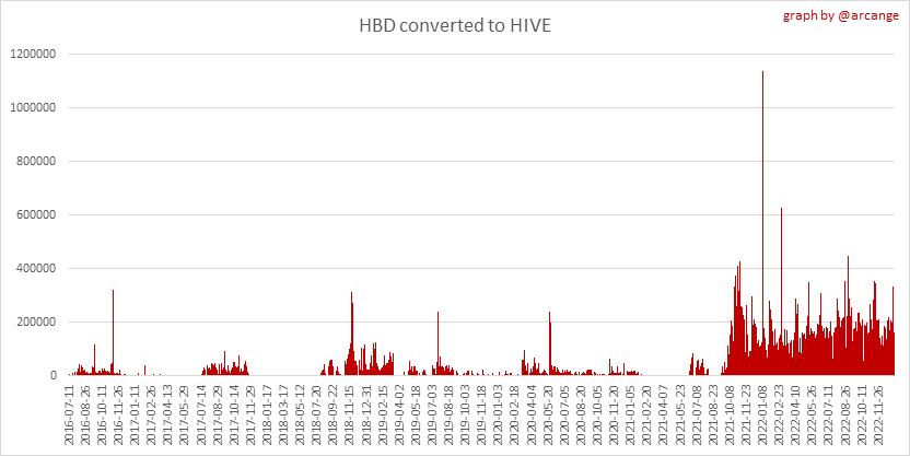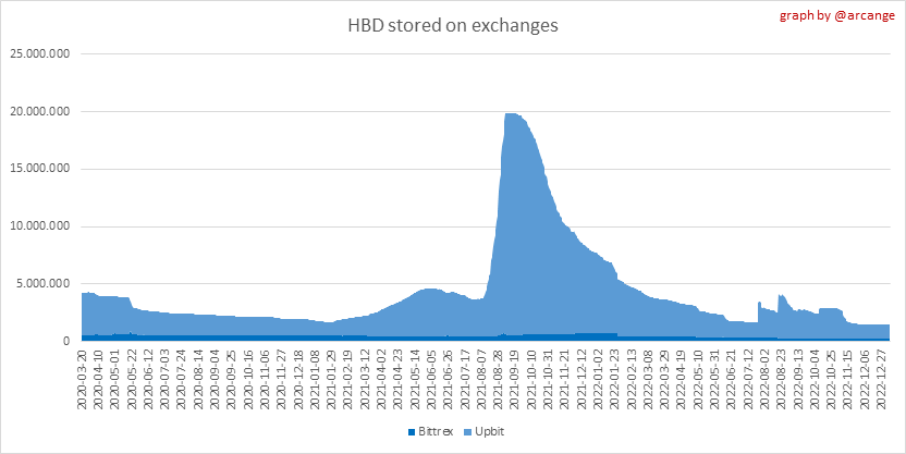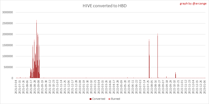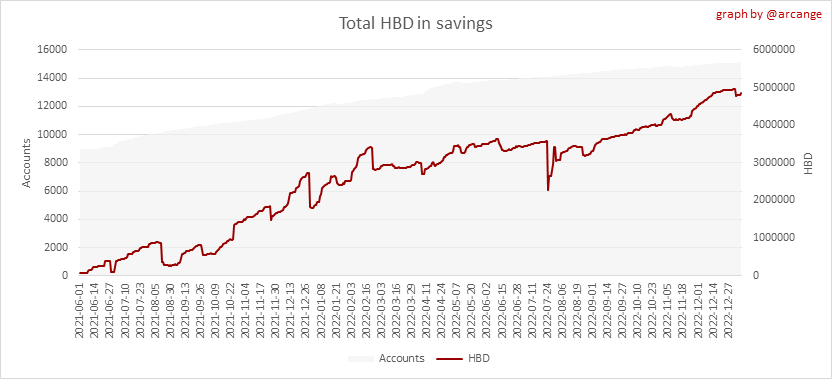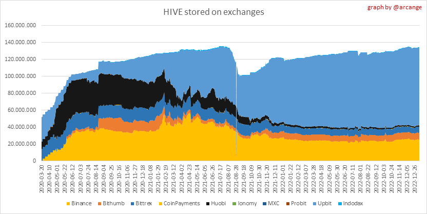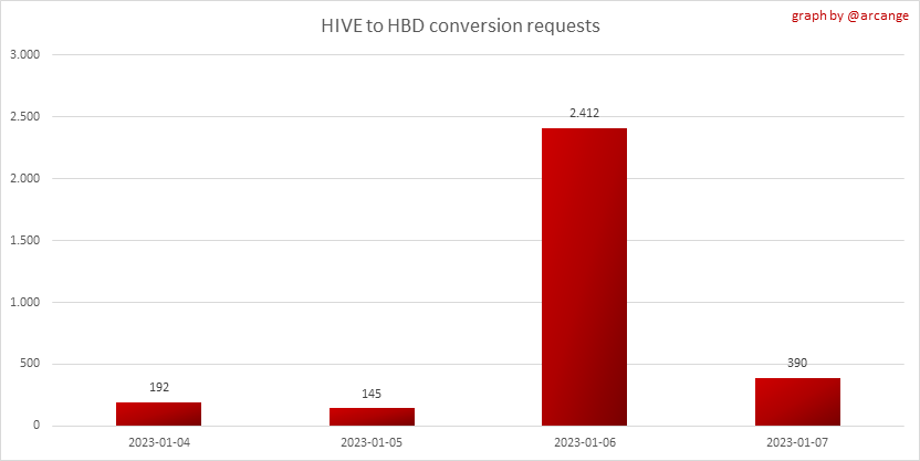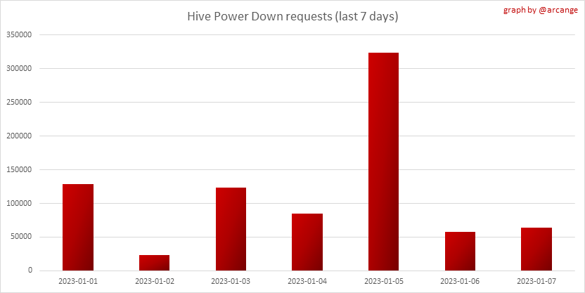 <center></center> ### Welcome to the daily financial report about the Hive blockchain. All the information presented in this report is based on the data collected from the blockchain until 2023-01-07 midnight UTC. This report aims to provide you with a clear view of what is happening on the Hive blockchain. <sub> Este post está traducido al español - [aquí](/@arcange-es/hive-finance-20230107-es)</sub> <sub> Dieser Beitrag ist ins Deutsche übersetzt - [hier](/@arcange-de/hive-finance-20230107-de)</sub> <sub> Une version en français de ce post est disponible - [ici](/@arcange-fr/hive-finance-20230107-fr)</sub> ### 1. Price ||| |-|-| ||| These graphs show the evolution of prices in USD for HIVE and HBD. ### 2. Supply  This graph shows the evolution of HIVE virtual Supply. The virtual supply is the sum of HIVE supply (liquid and staked HIVE) and HBD supply (converted into HIVE). The graph also displays the debt ratio (HBD supply / HIVE virtual supply). Keep in mind that since hardfork 24 funds in the treasury ([@hive.fund HBD balance](https://peakd.com/@hive.fund/wallet)) don't count towards the HBD debt ratio. ||| |-|-| ||| These graphs show the evolution of the HIVE Supply (both liquid and staked) and the HBD supply. ||| |-|-| || These charts show the evolution of the liquid HIVE and the staked HIVE (Hive Power).  This graph shows the overall Hive tokens distribution. ### 3. HBD Savings  |Account|Deposit|Account|Withdrawal| |-|-:|-|-:| |@hivefest|16,000.000 HBD|@shikoku|559.058 HBD| |@newsflash|12,649.537 HBD|@therealwolf|533.450 HBD| |@gimmiethecash|1,984.545 HBD|@dalz|200.000 HBD| |@adesojisouljay|450.000 HBD|@fundsaver|100.000 HBD| |@hiveauth|324.984 HBD|@risingstarhub|100.000 HBD| |@johnhtims.life|155.900 HBD|@clairemobey|35.849 HBD| |@hivesql|135.000 HBD|@lyamalfonzo23|32.112 HBD| |@underskeed|117.377 HBD|@eil7304|30.473 HBD| |@strawhat|86.445 HBD|@soy-laloreto|30.000 HBD| |@dsavings|83.189 HBD|@srey-yuu|23.325 HBD| This graph shows how much and how many accounts store HBD in savings. The table below shows the topmost HBD deposits and withdrawals of the day.  _<sub>**Note:** As of 2021-06-30 (HF25) interest is only paid for HBD which are stored in savings.</sub>_ This chart shows the amount of interest paid each month for holding HBD and how many accounts received such interest. ### 4. Balances  This graph shows the number of HIVE, both liquid and in savings, held by all accounts.  This graph shows the number of HBD, both liquid and in savings, held by all accounts. ### 5. Conversions <sub>_**Note:** As a reminder, conversion requests are only finalized after 3 days. It is only then that it is known exactly how many HIVE were burned in return for the HBD received at the time of the conversion request._</sub>  This graph shows the number of HIVE collateralized due to requests to convert HIVE to HBD over the past few days. ||| |-|-| ||| These graphs show the number of HIVE effectively used by the conversion process (HIVE converted and 5% HIVE fee which is burned) each day and month when requests to convert HIVE to HBD have been finalized. ||| |-|-| ||| These graphs show the number of HBD burned, each day and each month, following requests to convert HBD to HIVE. ### 6. Powerup and Powerdown  |Date|Account|Amount| |-|-|-:| |2023-01-07 07:20:54|@roelandp|37,051.030 HIVE| |2023-01-07 09:29:48|@cryptobrewmaster|8,000.504 HIVE| |2023-01-07 05:28:30|@aliakbar2|5,495.343 HIVE| |2023-01-07 03:22:15|@shohana1|3,185.224 HIVE| |2023-01-07 04:18:18|@alexa-macro|1,425.599 HIVE| |2023-01-07 10:28:39|@bengy|1,350.030 HIVE| |2023-01-07 07:38:45|@edmundochauran|1,092.841 HIVE| |2023-01-07 08:00:39|@aksurevm89|1,051.000 HIVE| |2023-01-07 07:42:45|@marianis|960.026 HIVE| |2023-01-07 06:20:39|@naythan|740.055 HIVE| This graph and table show the amount of powerdown initiated over the last 7 days, and the largest initiated on this day.  |Account|Powerup|Account|Powerdown| |-|-:|-|-:| |@twocandles84|6,810.415 HIVE|@newsflash|152,665.871 HIVE| |@acidyo|655.669 HIVE|@jim888|2,030.150 HIVE| |@paydice|609.572 HIVE|@reward.app|1,850.519 HIVE| |@eddie-earner|559.770 HIVE|@omonomo|1,636.061 HIVE| |@juancar347|500.000 HIVE|@tipu|1,610.388 HIVE| |@queen-silvia|494.833 HIVE|@extrospect|1,584.364 HIVE| |@geneeverett|490.078 HIVE|@solominer|1,001.790 HIVE| |@geneandashlee|490.000 HIVE|@uwelang|651.394 HIVE| |@burlarj|463.000 HIVE|@dodovietnam|385.304 HIVE| |@tombramycin|388.000 HIVE|@ottomu|359.832 HIVE| This graph shows the daily HIVE power-up, power-down, and the resulting variation over the last 30 days. The table shows the topmost power-ups and power-downs of the day.  This graph shows the monthly HIVE power-up, power-down and the resulting variation. **Values for the last 3 months** |Period|Powerup|Powerdown|Difference| |-|-:|-:|-:| |2023-01|250,730.000|467,790.000|<div class="phishy">-217,060.000</div>| |2022-12|1,346,918.000|2,312,701.000|<div class="phishy">-965,783.000</div>| |2022-11|1,091,687.000|2,374,457.000|<div class="phishy">-1,282,770.000</div>| ### 7. Transfers ||| |-|-| ||| These graphs show the volume (in USD) of HIVE and HBD transferred between accounts. ### 8. Exchanges ||| |-|-| ||| These graphs show the amount and distribution of HIVE and HBD stored on the exchanges where they are listed. ||| |-|-| ||| These graphs show the daily evolution of HIVE and HBD stored on the exchanges where they are listed. --- I hope you find those stats useful. If you would like to see additional stats, feel free to drop me a comment. Your feedback is than welcome. Thanks for reading. --- <center> ### Check out my apps and services <a href="https://engage.hivechain.app"><img src="https://i.imgur.com/GiNJqlm.png"></a><a href="/@hivebuzz"><img src="https://i.imgur.com/B4UTun2.png"></a><a href="/@hivesql"><img src="https://i.imgur.com/EPN8RW6.png"></a><a href="https://hiveauth.com"><img src="https://i.imgur.com/2Ws6KzW.png"></a><a href="/hive/@arcange/introducing-hive-account-recovery"><img src="https://i.imgur.com/