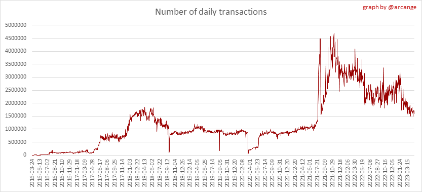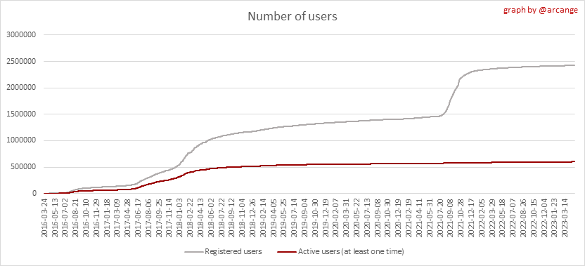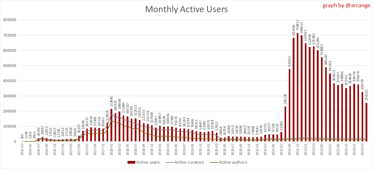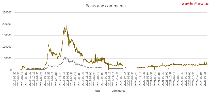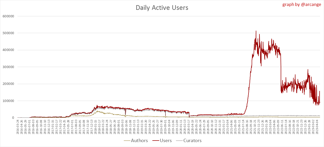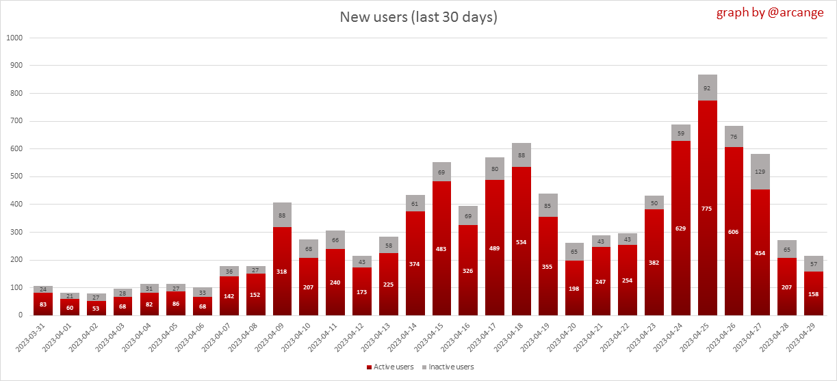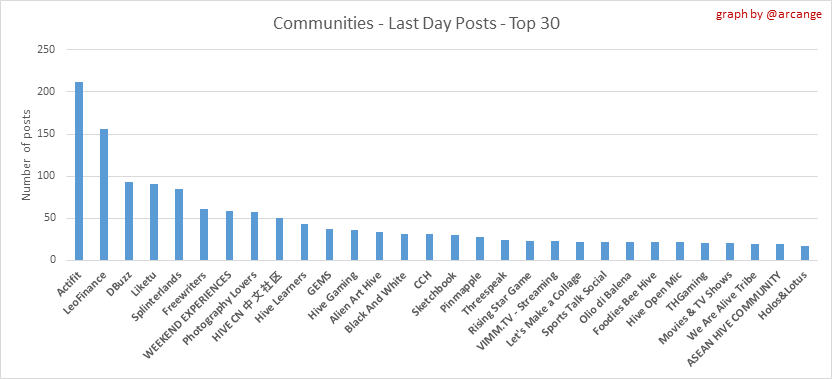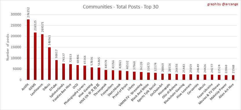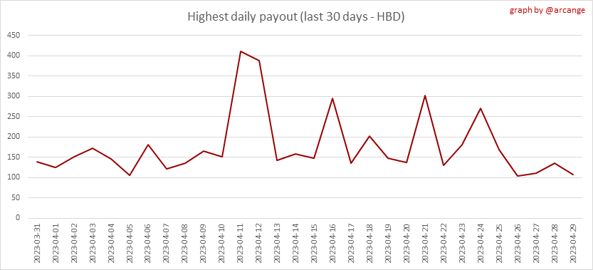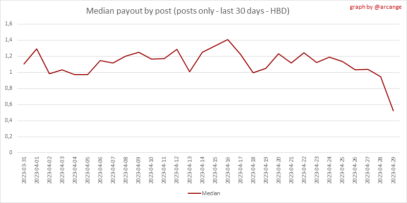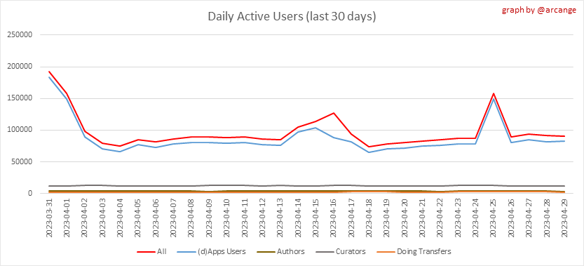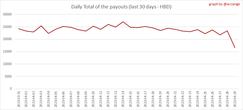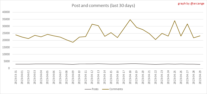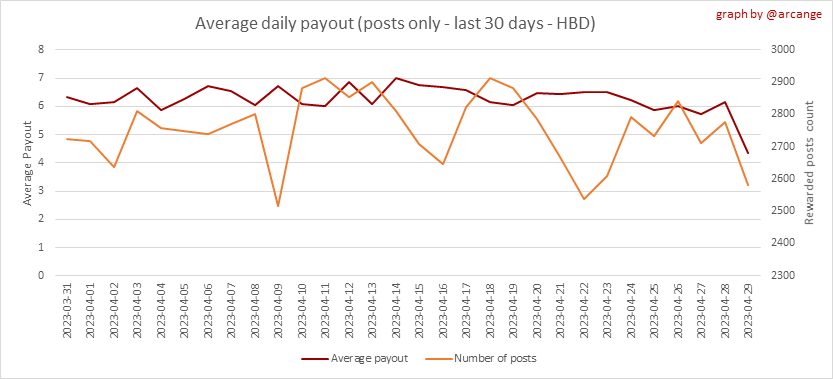 <center></center> ### Welcome to the daily analytical report about the Hive blockchain. All the information presented in this report is based on the data collected from the blockchain until 2023-04-29 midnight UTC. This report aims to provide you with a clear view of what is happening on the Hive blockchain. <sub> Este post está traducido al español - [aquí](/@arcange-es/hive-statistics-20230429-es)</sub> <sub> Dieser Beitrag ist ins Deutsche übersetzt - [hier](/@arcange-de/hive-statistics-20230429-de)</sub> <sub> Une version en français de ce post est disponible - [ici](/@arcange-fr/hive-statistics-20230429-fr)</sub> ### 1. New users  This chart shows the number of newly registered users on the blockchain and how many of them became active. The chart is kind of dynamic! A user can register one day and become active a few days later. Therefore, the number of active users on a specific date may change from day to day. ||| |-|-| ||| These two graphs show who created new accounts during the last day and the total number of registered accounts. The red line shows how many of them have been active at least once (active meaning publishing a post, commenting or voting). They are included even if they become inactive later. ### 2. Active users ||| |-|-| |||  These graphs show the activity of users over time and in more detail the last 30 days. In these graphs, "active users" are those performing any type of transaction on the blockchain. The last graph is a monthly summary of the active users. Be careful when interpreting the value of the last column which can be much lower if the end of the month has not yet been reached. ### 3. Apps & (d)Apps  This graph shows which applications are most used to publish posts and comments. Please note that the same user can use several different applications.  This graph shows which applications generate the most activity (custom_json operations) on the blockchain. ### 4. Posts And comments ||| |-|-| ||| These graphs show the evolution of posts and comments for the whole blockchain lifetime and the last 30 days. ### 5. Curation ||| |-|-| ||| These graphs show the evolution of curation (upvotes) for the whole blockchain lifetime and the last 30 days. ### 6. Daily transactions  |||| |-|-|-| |||| These graphs show the number of transactions per day, and the highest number of transactions per block, the average number of transactions per block, and the number of transactions per block for the last 48 hours. This gives you an idea of the whole activity on the blockchain.  This graph shows the distribution of the top 10 types of transactions by number of operations performed on the blockchain. ### 7. Communities and Tags  This graph shows the communities with the most subscribers. ||| |-|-| ||| These graphs show the most active communities by number of posts (blockchain lifetime and last day). ||| |-|-| ||| These graphs show which main tags have been the most used for publishing posts for the whole blockchain lifetime and the last day. ### 8. Distribution |||||| |:-:|:-:|:-:|:-:|:-:| |||||| |<sub>< ~562 HP</sub>|<sub>>= ~562 HP</sub>|<sub>>= ~5619 HP</sub>|<sub>>= ~56184 HP</sub>|<sub>>= ~561833 HP</sub>| ||| |-|-| ||| These graphs show the number of users according to their Hive Power. The left graph shows the distribution without taking into account any delegation made or received by the accounts. The right graph takes into account delegation, adds received HP delegation and subtracts given HP delegation. The grey part of each column indicates how many accounts are inactive (those who have not posted, commented or voted the last 30 days). ||| |-|-| ||| This graph shows the distribution of Hive Power cumulated per account level. The left graph shows the distribution without taking into account any delegation made or received by the accounts. The right graphs take into account delegation, adds received HP delegation and subtracts given HP delegation. The grey part of each column indicates unused Hive Power by inactive accounts (see above the definition of inactive). Below each column, you will also see a ratio to all existing Hive Power. ### 9. Payouts  This graph shows the highest reward paid on a post (or comment) for the last 30 days. ||| |-|-| ||| These graphs show the total of the distributed payout (posts and comments) for each day. ||| |-|-| ||| These graphs show the average and median payout per post for the last 30 days. --- I hope you find those stats useful. If you would like to see additional stats, feel free to drop me a comment. Your feedback is welcome. Thanks for reading. --- <center> ### Check out my apps and services <a href="https://engage.hivechain.app"><img src="https://i.imgur.com/GiNJqlm.png"></a><a href="/@hivebuzz"><img src="https://i.imgur.com/B4UTun2.png"></a><a href="/@hivesql"><img src="https://i.imgur.com/EPN8RW6.png"></a><a href="https://hiveauth.com"><img src="https://i.imgur.com/2Ws6KzW.png"></a><a href="/hive/@arcange/introducing-hive-account-recovery"><img src="https://i.imgur.com/6TWeW7V.png"></a><a href="/@hive.autoclaim"><img src="https://i.imgur.com/ih2pEOw.png"></a></center> </center> <center> ### [Vote for me as a witness ](https://vote.hive.uno/@arcange) </center>