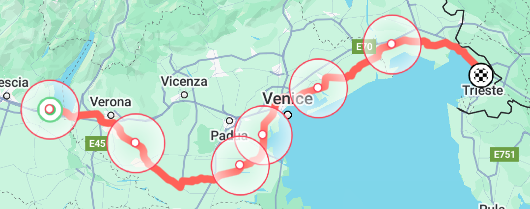 Today was the 3rd day of my road to HiveFest. > For those who missed my previous posts, I began a 1500km motorbike to HiveFest from Cluny (France) to Split (Croatia) to attend HiveFest. > >Here are the links to the previous posts: [Day 1](/@arcange/hivefest-road-day1) - [Day 2](/@arcange/hivefest-road-day2) I left the rainy mountains far behind and embarked on a scenic and eventful journey towards Trieste. ### Deserved Credits First, I want to extend a big thank you to @alonicus who saved my day. In a comment on my previous post, he shared his clever idea of using a service station hand dryer to dry out your gear after being drenched by the rain. I took it a step further and used my hotel room's hair dryer on my soaked boots and gloves. This hack worked wonders, giving me dry and comfortable gear for the next leg of my journey.  <br>PS: I even attempted to dry my socks too but stopped swiftly as the room quickly filled with an unpleasant smell! ;) ### The Plan Although the sky was still covered with the remnants of the previous day's storm and despite the mixed weather, I took the gamble of dressing more lightly. It must be said that when we left, it was already quite warm. Bet won as I was blessed with a big blue sky and sunshine by the time I arrived in Trieste. But let's go back to the beginning. Once again, what a day it turned out to be! ### The GPS fucked my trip... My initial goal was to ride from Lake Garda where I stopped yesterday to Trieste, passing through the enchanting cities of Verona, Vicenza, Padua, then Venice. However, the journey wasn’t without its challenges. My GPS had a bit of a meltdown, recalculating the route and adding an extra 60 kilometers to my ride after I took a wrong turn. As you can see on my travel summary below, I didn't take the shortest path:  Surprisingly, this detour turned out to be exactly what I needed! I found myself on a free highway (which allowed me to keep my promise not to take toll roads), engaging my brain in "cruise control" mode, and relaxing to some good music. It was unexpectedly quite soothing. ### I fucked the GPS :P However, feeling adventurous, I decided to outsmart the GPS by exiting the highway and taking a shortcut. This move proved to be the highlight of my day. I rode several dozen kilometers along the beautiful winding roads adjacent to the Adige River. The solitude and beauty of the path, devoid of any traffic, provided pure riding pleasure. ### Community on the Road The journey became even more enjoyable when I found myself sharing the road with two Hungarian bikers. We had a fantastic time riding together, exchanging nods and smiles before arriving in Trieste.  <br>As the day progressed, the scenery along the Adriatic coast towards Trieste was spectacular. I was like an oldish child, all excited to see the sea. What's more, I arrived just at the golden hour... you know, that time of day when the colors are at their most beautiful.  <br>The stunning views made the ride all the more memorable. ### Looking Forward Today was a successful and invigorating day. Tomorrow, I’m thrilled to head towards Rijeka and then Zadar, riding along the Croatian coast after crossing Slovenia. Something tells me it’s going to be an absolute blast. Thank you for following along on this journey. Stay tuned for more adventures on my road to HiveFest! Ride on! --- <center> ### Check out my apps and services <a href="https://engage.hivechain.app"><img src="https://i.imgur.com/GiNJqlm.png"></a><a href="https://doc.hivebuzz.me"><img src="https://i.imgur.com/B4UTun2.png"></a><a href="https://hivesql.io"><img src="https://i.imgur.com/EPN8RW6.png"></a><a href="https://hiveauth.com"><img src="https://i.imgur.com/2Ws6KzW.png"></a><a href="/hive/@arcange/introducing-hive-account-recovery"><img src="https://i.imgur.com/6TWeW7V.png"></a><a href="/@hive.autoclaim"><img src="https://i.imgur.com/ih2pEOw.png"></a><a href="https://xfer.hivechain.app"><img src="https://i.imgur.com/LjJPCSy.png"></a></center> </center> <center> ### [Vote for me as a witness ](https://vote.hive.uno/@arcange) </center>