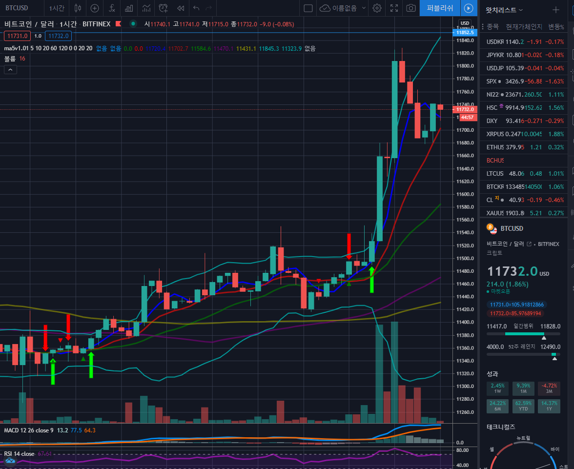 # 안녕하십니까 _돌핀이 @asd5710_ 입니다  지금 비트는 __10732__달러 입니다 비트가 저항선 11800달러 부근까지 상승했습니다 이 저항선을 뚫고 갈지 지켜봐야 할것 같습니다 뚫고 가게 된다면 12000 12500 달러까지 상승할 가능성이 열려 있습니다