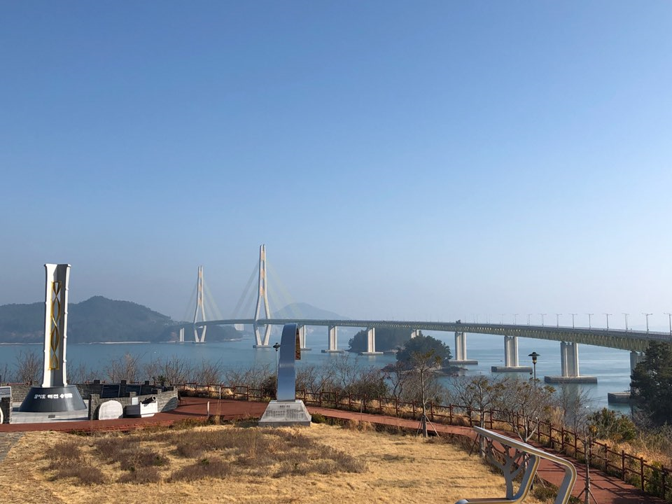 고흥 여행을 다녀왔습니다. 금산에 있는 거금대교랑 포두에 있는 해창만 캠핑장을 다녀왔습니다  처음에 간곳은 고흥 금산에 있는 거금대교를 다녀왔습니다 고흥에 거금대교옆에 있는 휴게소에서 구경을 좀 했습니다  가장 먼저 보이는 것은 큰 조각상이 보입니다 무슨 조각상인지는 모릅니다 조각상은 가까이에서 볼 수 있는 길이 있어 따라 올라갔습니다  조각상 바로 밑에서 찍은 사진입니다 재질은 스댕같아 보이네요 그리고 오른쪽 중지에 피뢰침이 있네요 ㅎㅎ 무슨 의미를 가진 조각상인지 모르겠네요 ^^  조각상 밑에서 거금데교를 본 사진입니다 날씨가 좀더 좋았으면 좋겠다는 마음 뿐이네요 그래도 사진으로 본것보다는 직접보는게 훨씬 좋아요 사진으로 닮기는 사진이 좁네요   내려와서 휴게소에서 찍은 거금대교 사진이랑 바다 사진이네요 배가 하나 지나가서 일단찍어봤습니다 바람이 좀 불어서 추워서 아쉽긴 했지만 그래도 기분이 좋네요 원래 거금대교 휴게소에 매생이호떡 파는 노점상이 있는데 오늘은 없어서 아쉽네요 그거 먹어보고 싶었지만 없어서 패스했습니다 거문대교 구경 끝나고 해창만으로 무브무브  해창만 캠핑장으로 이동했습니다 주차하고 바로 옆에 길이 있어서 사진한컷 찍었습니다 운동삼아 이길을 걸어보았습니다  길을 걷다보면 몇개의 운동기구가 보였습니다 운동삼아 걷는김에 운동기구에 멈춰서 운동했습니다 운동기구에 비친 저의 모습이 보이네요  운동끝나고 길을 걷다가 이제는 강가에 부둣가 같은게 보이네요 가까이 가서 구경좀 해봐야겠네요   부둣가 가 부근에서 사진을 찍었습니다 바람이 불어서 파도치는 것처럼보이네요 그래도 사진 한컷을 위해사 바닥에서 갈대쪽에서도 사잔찍었네요 해창만은 민물이랑 바닷물이 모이는 곳에 위치해 있습나다 저는 민물쪽만 찍었는데 바닷쪽도 보면 예쁩니다 다음에는 바닷쪽도 찍어 봐야겠네요 오랜만에 바람도 쎄고 기분을 해피하게 풀어봤습니다 가끔 이렇게 바람쎄러 다니시는것도 좋다고 보이네요