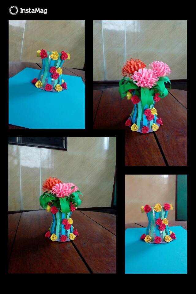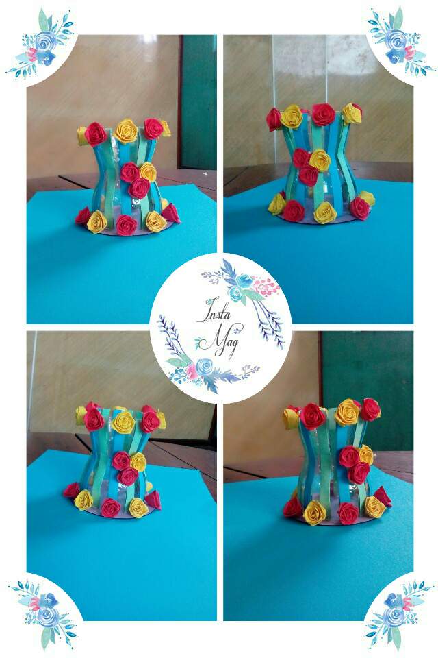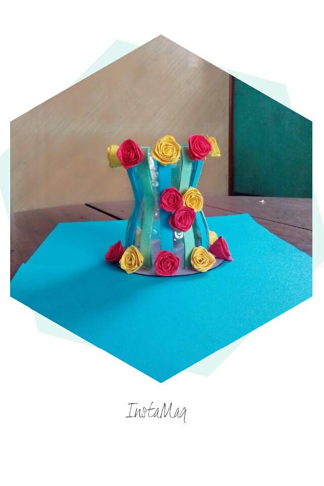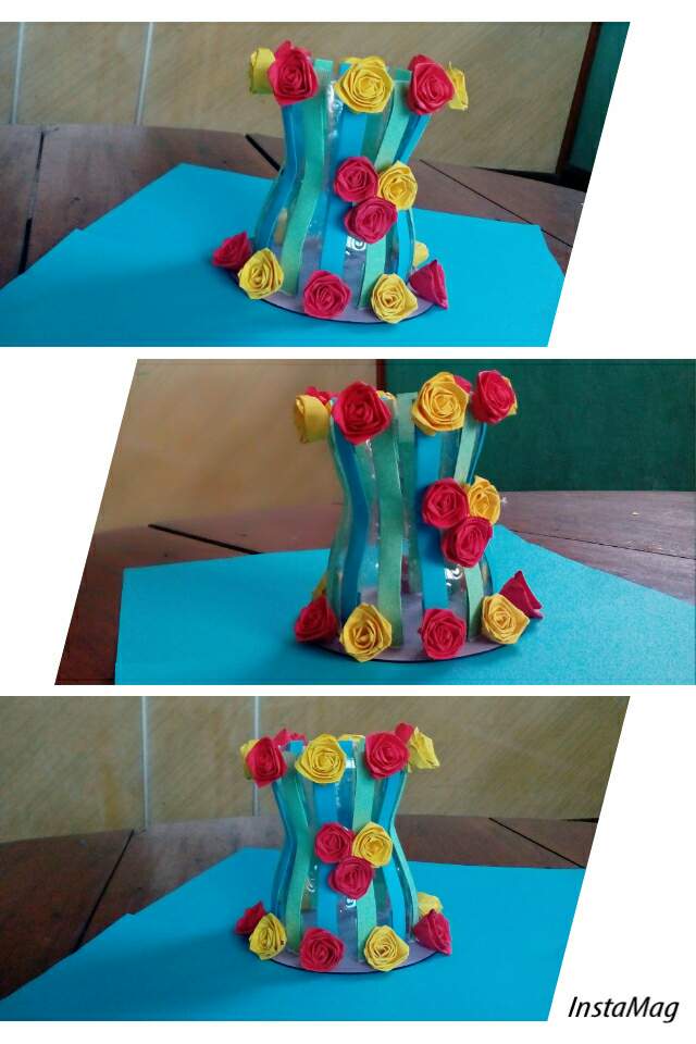 ဒီတစ္ခါမွာေတာ့စကၠဴသီးသန္႔မဟုတ္ဘဲပလတ္စတစ္ဘူးခြံအလြတ္တစ္ခုႏွင့့္အတူေရာင္စံုစာရြက္ေပါငး္ၿပီး၊ႏွင္းဆီပြင့္ေလးေတြႏွင့္အလွဆင္ထားတဲ့ပန္းအိုးတစ္လံုးျပဳလုပ္လိုက္ပါတယ္။   ပထမအဆင့္မွာေတာ့ပလတ္စတစ္ဘူးခြံကိုျဖတ္လိုက္ပါတယ္။ၿပီးေတာ့ေရာင္စံုစာရြက္ကိုေခါက္ၿပီးအေရာင္ႏွစ္မ်ိဳးျဖင့့္တစ္ခုစီျခားကာပံုပါအတိုင္းဘူးခြံမွာေကာ္ကပ္အလွဆင္လိုက္ပါတယ္။ၿပီးေနာက္cdခ်ပ္အေဟာင္းတစ္ခုကိုခရမ္းေရာင္စာရြက္ေကာ္ကပ္ၿပီး၊ခုနကျပဳလုပ္ၿပီးတဲ့ဘူးခြံျဖင့္ဆက္လိုက္ပါတယ္။     ဒီအဆင့္မွာေတာ့ႏွင္းဆီပြင့္ျပဳလုပ္ပါ့မယ္။အနီႏွင့္အ၀ါေရာင္ႏွစ္မ်ိဳးျပဳလုပ္မွာပါ။ပထမဆံုးစကၠဴကိုေခါက္လိုက္တယ္။ထိုစကၠဴအပိုင္းကိုပံုပါအတိုင္းစ၍ေခါက္ကာ၊ေခါက္ခ်ိဳးရင္းႏွင္းဆီပြင့္ပံုေဖာ္လိုက္ပါတယ္။အဆံုးမွာေကာ္ကပ္လိုက္ပါတယ္။ထိုႏွင္းဆီပြင့္ေတြကိုတစ္ခုစီျခား၍ေကာ္ကပ္အလွဆင္လိုက္ပါတယ္။ပန္းပြင့္ေတြကိုေတာ့ၿပီးခဲ့တဲ့ေန႔ကျပဳလုပ္ထားတဲ့ပန္းပြင့့္အရြက္ေတြကိုပဲျပန္အသံုးျပဳလိုက္ပါတယ္။         Written by @asterkame MSC-008 By my photos & made by me