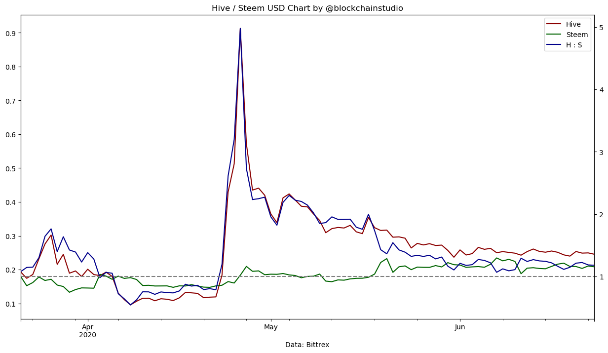 Hive / Steem Price chart 2020-06-23