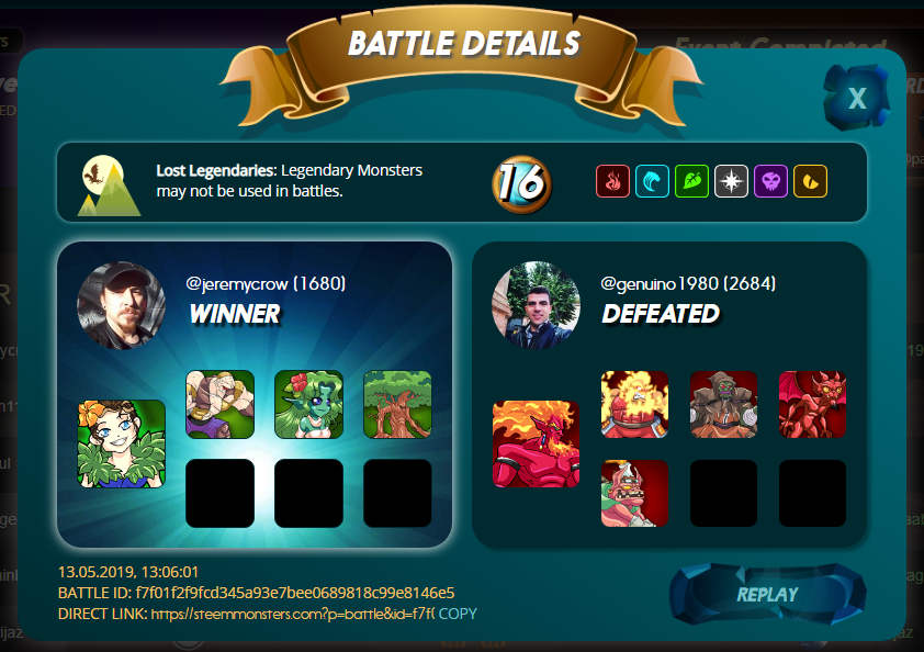 Hey! I have the next one proposition: It is a really good to see the pop-up info there about the battle like it done in the Tournaments Section: Maybe near or maybe replace the "share the battle" button (and then - the button will be inside)  --- My different issues/suggestions to the Steem Monsters game: [Unexpected crossing of Gold and Silver Leagues](https://steemit.com/steemmonsters/@comegetsome/unexpected-crossing-of-gold-and-silver-leagues-steem-monsters) [Steem Monsters proposal for the card gift: what's about a memo?](https://steemit.com/steemmonsters/@comegetsome/steem-monsters-proposal-for-the-card-gift-what-s-about-a-memo) [Steem Monsters suggestion: need to add "lost connection" alert](https://steemit.com/steemmonsters/@comegetsome/steem-monsters-suggestion-need-to-add-lost-connection-allert) [Issue of the banormal duplication in the Daily Quests Rewards](https://steemit.com/steemmonsters/@comegetsome/issue-of-the-banormal-duplication-in-the-daily-quests-rewards) [add another stats in the BATTLE TOP - Current BATTLEs in my League](https://steemit.com/steemmonsters/@comegetsome/steem-monsters-suggestion-add-another-stats-in-the-battle-top-current-battles-in-my-league) [Steem Monsters Tournaments suggestion: to add some more info & external checkbox column](https://steemit.com/steemmonsters/@comegetsome/steem-monsters-tournaments-suggestion-to-add-some-more-info-and-external-checkbox-column) [Proposal of the pushable suggested price in the list for sale](https://steemit.com/steemmonsters/@comegetsome/steem-monsters-propose-pushable-suggested-price-in-the-list-for-sale) [The Tournament share button & add affiliate linking for this too](https://steemit.com/steemmonsters/@comegetsome/steem-monsters-propose-the-toutrnament-share-button-and-add-affiliate-linking-for-this-too) [Steem Monsters Daily Quest 00:00:00 countdown issue - it needs to add auto-refresh the page](https://steemit.com/steemmonsters/@comegetsome/steem-monsters-daily-quest-00-00-00-countdown-issue-it-needs-to-add-auto-refresh-the-page) [Tournaments suggestion - clickable urls in tournament description](https://steemit.com/steemmonsters/@comegetsome/steem-monsters-tournaments-suggestion-clickable-urls-in-tournament-description) [Tournaments suggestion: to add some more info about the Completed ones](https://steemit.com/steemmonsters/@comegetsome/steem-monsters-tournaments-suggestion-to-add-some-more-info-about-the-completed-ones) [Steem Monsters: Monster Selection Mode needs some tunes](https://steemit.com/steemmonsters/@comegetsome/steem-monsters-monster-selection-mode-needs-some-tunes) [Steem Monsters site: I wonder does the date on site needs to be updated?](https://steemit.com/steemmonsters/@comegetsome/steem-monsters-site-i-wonder-does-the-date-on-site-needs-to-be-updated) [Steem Monsters Collection & Market tabs: lacks of pinned filter menu](https://steemit.com/steemmonsters/@comegetsome/steem-monsters-collection-and-market-tabs-lacks-of-pinned-filter-menu) [Steem Monsters needs to improveslightly the Battle Statistics Table](https://steemit.com/steemmonsters/@comegetsome/steem-monsters-slightly-improve-the-battle-statistics-table) [pixelhunting issue for the Kiara Lightbringer card view)](https://steemit.com/steemmonsters/@comegetsome/suddenly-card-design-issue-in-the-steem-monsters-pixelhunting-mode-on) [About some more info descriptions about the catual actions on the main SM page](https://steemit.com/steemmonsters/@comegetsome/the-legendary-summonres-airdrop-ended-but-who-knew-about-it-lets-smm-analyse-to-improve-this) --- [](https://steemmonsters.com?ref=comegetsome) ---