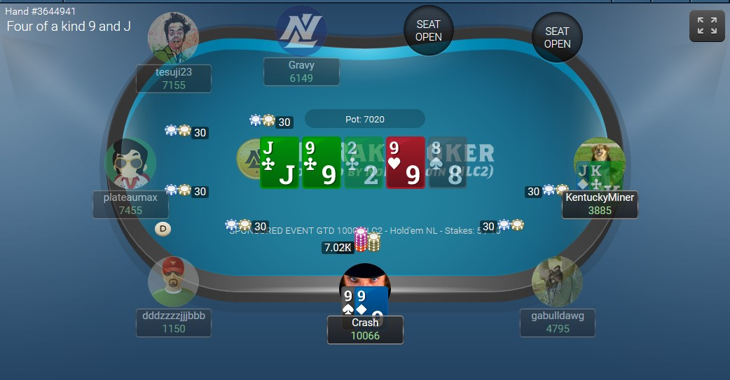 Last night in in the GTD 1000 tournament I hit quads. Sure I lost about 80 nlc2 in rebuy and add ons. I just couldn't get my rhythm and finished 6th. I was just one off from getting paid. But this made up for it big time. I basically won the GTD prize pool once I hit this beauty.  If you are new or recently returning to Nolimitcoin poker, here is what you need to do if you hit quads, straight flushes and royal flushes. <a href="https://www.nolimitcoinpoker.com/27072"> Sign Up</a> for a NLC2 poker account. Then enter promo code WSOP 19 and receive a special bonus of 50 free NLC2. If you hit quads or better, right now there is a special high hand bonus to quads, straight flush or royal flush. RULES: > Both your cards need to play > Take a screenshot of the hand, you can retrieve this from your hand history > Hand number # needs to be visible in the screenshot >Post your screenshot on your social media such as: Twitter, Facebook or Steemit >In your post, tag the @NLC2Poker twitter or link to our website <a href="https://www.nolimitcoinpoker.com/27072"> https://www.nolimitcoinpoker.com</a> >Then share the link to your post in one of the following; <a href="https://t.me/NoLimitCoinNLC2">NoLimitCoin Telegram</a> <a href="https://nlc2.slack.com">NLC2 Slack</a> in #general channel <a href="https://discordapp.com/channels/385428784544874506/385428784544874508">NoLimitCoin Discord</a> in #general channel