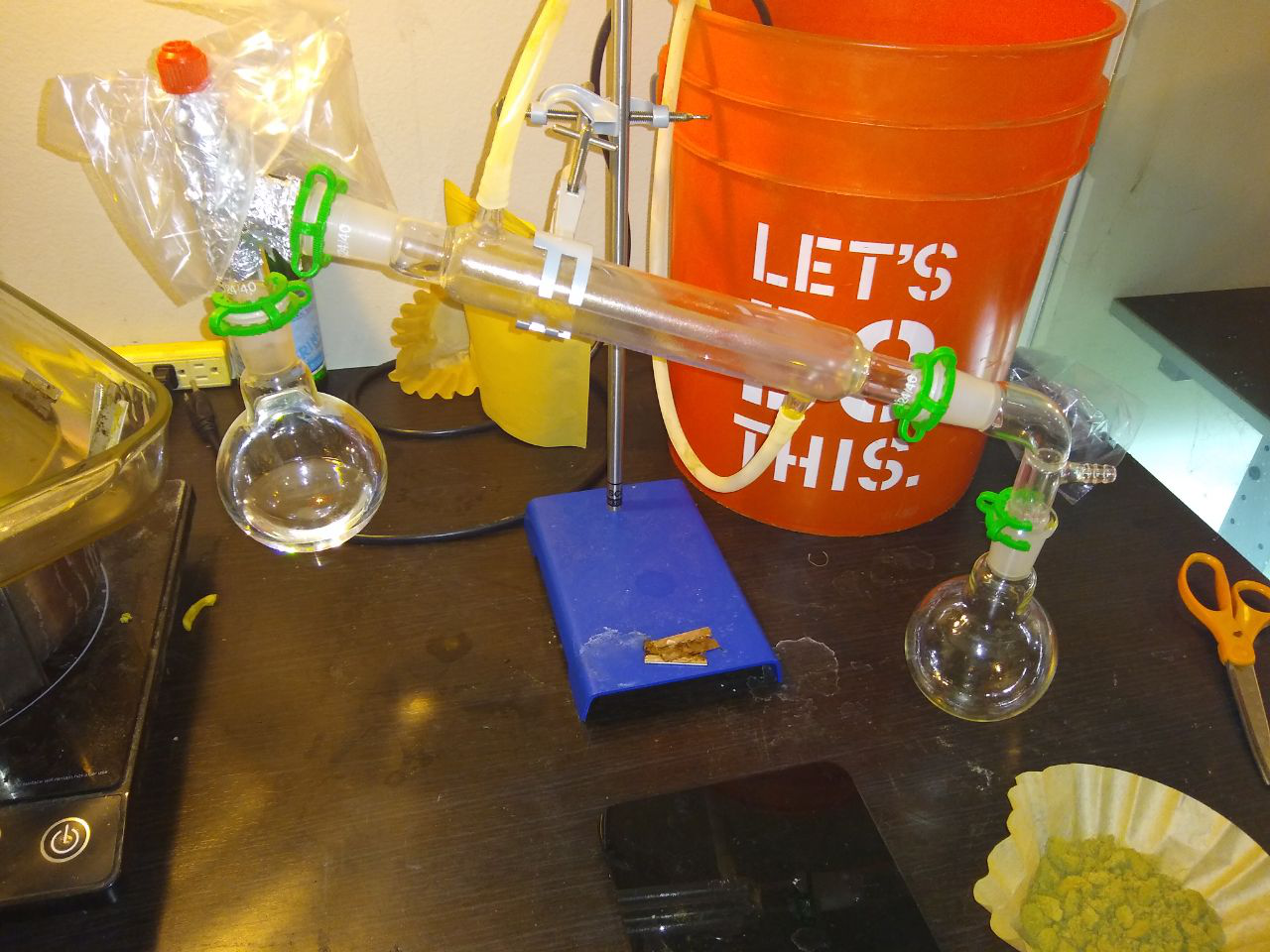 been playing around with some super cooled ethanol extractions lately, buying vodka and distilling it into 95% etoh. I prefur this method to spraying with butane because it is MUCH safer explosion / fire wise as well as all ingredients threw out the process are entirely food grade.  fresh nugs  Some kief from trim i had been accumulating     before and after filtration ;)