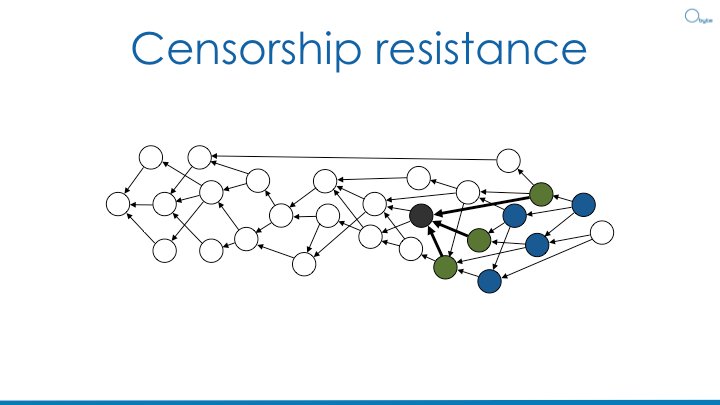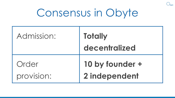 누군가 저에게 블록체인 프로젝트를 추천해달라고 물었을때 항상 언급되었던 프로젝트 중 하나가 바로 Obyte 입니다. 스팀 커뮤니티에는 상당히 익숙한 이름일지도 모르겠네요. 2018년도에 스팀 커뮤니티를 대상으로 대규모 에어드랍 계획을 밝혔던 바이트볼의 새로운 브랜드 이름이 Obyte 니까요. Obyte의 매력에 대해서는 다음 번 글에서 살펴보기로 하고, Obyte의 전반적인 이해를 돕기 위해 최근 Obyte 창립자인 [Tony](https://www.linkedin.com/in/anton-churyumov-32112b7/)가 발표한 글을 먼저 소개해드리겠습니다. > 이 글의 원문은 https://medium.com/obyte/from-blockchain-to-dag-getting-rid-of-middlemen-28afa7563545 이며 Obyte Foundation 동의하에 번역을 진행했습니다. --- 이 글은 Obyte 창립자 Tony가 지난 10월 31일 그리스 아테네에서 개최된 [Decentralized](https://www.decentralized.com/) 컨퍼런스에서 발표한 내용을 요약 정리한 것입니다. 이번 발표에서 Tony는 DAG 개념과 DAG가 블록체인보다 뛰어난 이유에 대해 설명했습니다. Obyte 재단은 Decentralized 컨퍼런스를 주관하고 DLT를 홍보하기 위해 애쓰고 있는 Nicosia 대학교(UNIC)에 특별히 감사 인사를 전했습니다. Obyte와 UNIC는 파트너쉽을 맺기로 결정했으며 UNIC는 향후 Obyte 네트워크의 독립 증인 후보가 될 것입니다. 또한, UNIC 연구 부처(department)에서는 Obyte 네트워크 및 합의 메커니즘 관련 연구, 테스트, 검증을 수행할 예정입니다. ---  방향성 비순환 그래프(Directed Acyclic Graph, DAG)를 이용한 분산 원장 구축과 DAG와 블록체인 간의 차이점에 대해 이야기를 나눠볼까 합니다.  암호화폐 영역에서 DAG는 새로운 개념이 아닙니다. DAG에 대해 이미 들어보신 분들이 있을 것 같습니다. DAG가 블록체인 확장성 문제에 대한 해결책 중 하나로 주목을 받았으니까요. 저는 확장성보다는 암호화폐가 존재하지 않았던 시기와 비교했을 때 암호화폐가 지닌 차별성에 대해 이야기해보려 합니다. 즉, **탈중앙화, 직거래, 검열 저항성(decentralization, disintermediation, censorship resistance)**에 대해서요.  DAG는 블록체인보다 직거래(disintermediated, 역자 주: middleman이 없다는 뜻)와 검열 저항성 측면에서 더 우수합니다.  블록체인에서는 사용자가 원장에 직접 접근할 수 없습니다. 원장에 트랜잭션을 추가하는 것은 블록 프로듀서, 채굴자를 통해서만 가능하죠. 즉, 다음 번 블록에 여러분의 트잭션을 추가하는 것을 결정하는 것은 채굴자입니다. 채굴자는 블록에 대한 독점적인 접근 권한을 가지고 있으며, 여러분의 트랜잭션을 받아들일지 여부를 결정할 수 있는 권한도 가지고 있습니다. 따라서, 채굴자는 여러분과 원장 사이에 존재하는 middlemen(중개인)이라고 할 수 있습니다.  실제로도 소수의 채굴자 또는 채굴풀이 채굴 파워의 절반 이상을 차지하고 있는 상태죠. 비트코인의 경우 4 개의 풀이, 이더리움의 2개의 풀이 강력한 지배력을 행사하고 있습니다. 이들이 공모한다면 특정 트랜잭션이 블록에 추가되지 못하게 막을 수도 있는 것이죠.  수 년간, 많은 블록체인 프로젝트의 설계는 블록 프로듀서를 선택하는 방법에 집중되었습니다. 하지만 여전히 블록 프로듀서는 **gatekeepers**로서의 역할을 수행합니다. 즉, 모든 트랜잭션을 블록 프로듀서를 거쳐야하며, 블록 프로듀서가 해당 트랜잭션을 받아들이지 않는다면 그 트랜잭션은 존재할 수 없습니다.  이것은 모든 블록체인 프로젝트가 가지고 있는 문제입니다. 이 문제를 해결하기 위해서는 블록 프로듀서를 선택하는 새로운 방법을 만드는 대신, 블록과 블록 프로듀서를 완전히 제거하는 방식으로 설계 방법을 근본적으로 변경해야 합니다. DAG는 블록에 연결하는 것이 아니라 트랜잭션을 직접 연결합니다. 각각의 트랜잭션은 1 개 이상의 이전 트랜잭션 해시를 포함하고 있습니다. 그 결과, 트랜잭션은 수학적으로 방향성 비순환 그래프(Directed Acyclic Graph, DAG)라고 알려진 구조로 서로 연결됩니다. 이제 완전히 **직접적이며, 직거래(direct, disintermediated)** 방식으로 원장에 접근할 수 있습니다. 어떠한 서드 파티나 middlemen에 의존하지 않아도 됩니다. 여러분이 트랜잭션을 원장에 추가하고 싶다면, 그저 **트랜잭션을 추가하면 됩니다.** 부모 트랜잭션이 몇 개 선택되고, 여러분의 데이터가 추가되고, 서명하고, 다른 개체(peers)에 브로드캐스트됩니다. 그 누구도 여러분의 이런 행동을 막을 수 없으며, 여러분의 트랜잭션은 이미 원장에 추가되어 있습니다. 다른 누군가의 허락을 구하지 않고도 누구든지 자신의 트랜잭션을 원장에 추가할 수 있기 때문에 DAG는 트랜잭션을 원장에 받아들이는 가장 탈중화적이며, 검열 저항적이며, 직거래 방식에 가까운(disintermediated) 방식입니다.  DAG를 기존 원장보다 진화한 3세대 원장 방식이라고 생각하시는 분도 있을 것 같네요. 처음에는 단일 개체(single party)가 gatekeeper 역할을 수행하던 중앙화된 원장 방식이었죠. 이후, 몇몇 gatekeeper가 트랜잭션을 원장으로 받아들이는 블록체인이라는 것이 등장했습니다. 그리고 마침내 gatekeeper가 존재하지 않고, 사용자가 직접 자신의 트랜잭션을 추가할 수 있는 DAG가 소개되었습니다.  이제 많은 자유를 얻게 되었는데 혼란으로 이어지