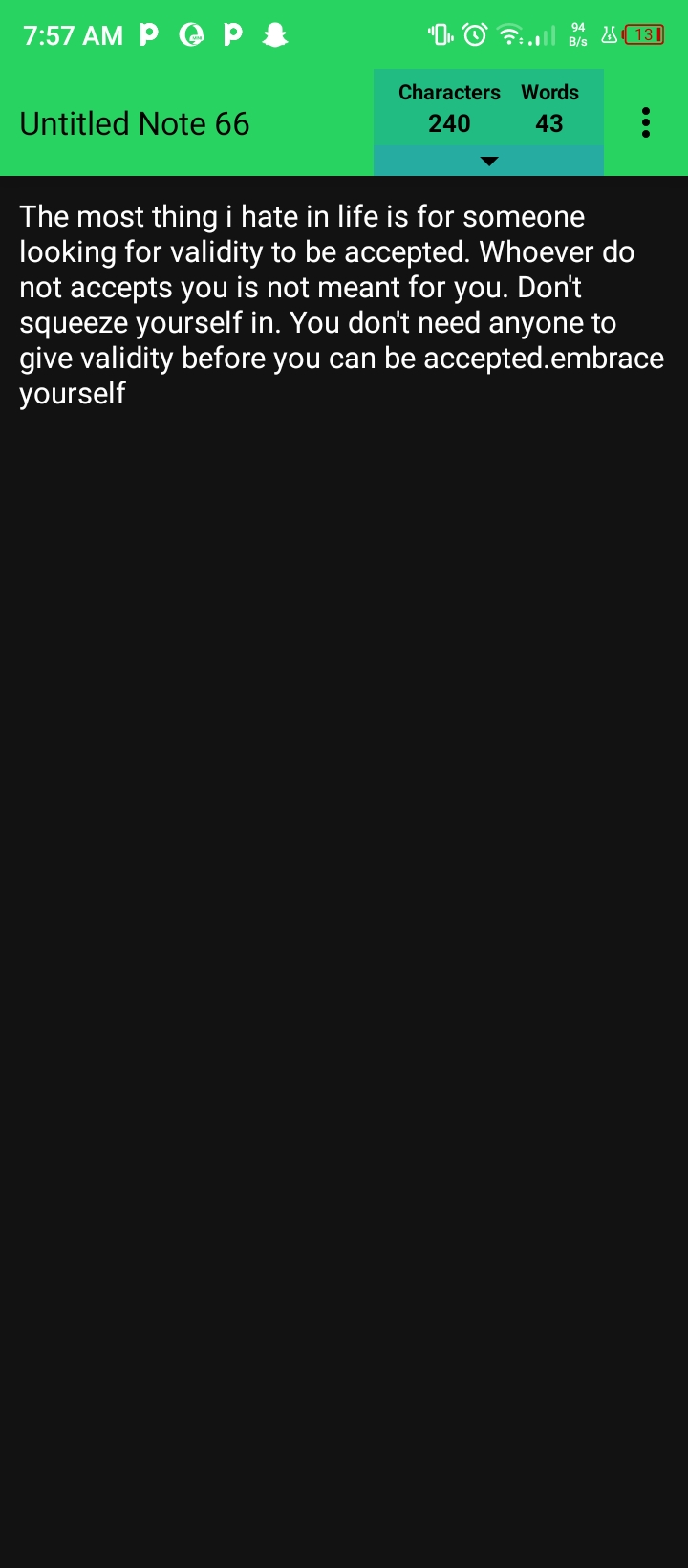 *Ai generated* The most thing i hate in life is for someone looking for validity to be accepted. Whoever do not accepts you is not meant for you. Don't squeeze yourself in. You don't need anyone to give validity before you can be accepted.embrace yourself  *Screenshot from word counter* ________ ________ *Thanks for reading through*