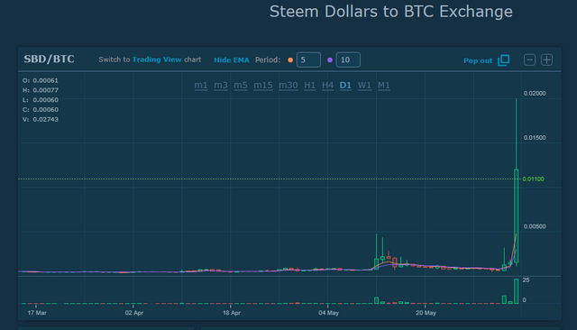 Despite the negative press HitBTC has been receiving, it still remains one of my favorite exchanges to trade cryptocurrency. The platform is among the very best, with very little down time, excellent liquidity and to date I have had no issues. The trollbox is still around with chatroom dedicated to traders who want to "ToTheMoon", "Bloodbath", "Uncensored" and "WorstExchange". It has one of the best interface and to date one of the few exchanges where you can place trades by simple clicking on the charts and getting your desired entry and exit points. One of the challenges however has been wallets that always seems to be in "Maintenance" and withdrawal of large sums of money that always trigger security lockdown which can become problematic if you are not verified. You are guaranteed to find some of your favorite altcoin there but be sure to check out the withdrawal limit for some of these coins as they can be on the high side in some cases. HitBTC is the place where I trade SBD and it has been very profitable and enjoyable one, bringing memories of charts I show below  The kind of chart that sets "ToTheMoon" chatroom on the trollbox on fire =  The pump of all pumps = Within hours SBD pump from 0.0009 all the way to 0.02 with a USD value of over 200 USD per SBD, the trollbox was pure excitement as the speculators called for higher prices. In fact, SBD at the time were among the hottest trade coin and it brought in a lot of outside speculators who added fuel to the pair. The end result was quite obvious as it is one of the coin with its wallet in "Maintenance".  The bigger question I have for readers and speculators/ traders, can this events happen again? The trollbox has been itchy looking for the next big move. Altcoins have been quite painful for many, with folks stomaching huge losses but has the enthusiasm of a coin on the move gone? Given the engagement I see on varying social media and the trollbox, I believe its a matter of someone adding some fuel to the fire to get things going. For full disclosure, I have a small position on SBD and regular trader on the exchange. This kind of trading is not and I repeat not for the weak, it can result in huge losses and likewise life changing profits. Only trade what you can afford to lose. HitBTC has taken a lot of negative press but if you provide all the documents required especially some of the KYC requirement, you get the full toolkit of the platform and unlimited withdrawal. Steem Dollars (SBD) remains an interesting experiment by design I continue to examine, it shows aspect of our nature, tendency of some to follow the script (binary thinkers) and the adaptability of others to change views base on expectation of traders on a platform. The lifeline of SBD on HitBTC gives a very different perspective compared to other exchanges, I remain engaged and excited to see what can happen in the future.