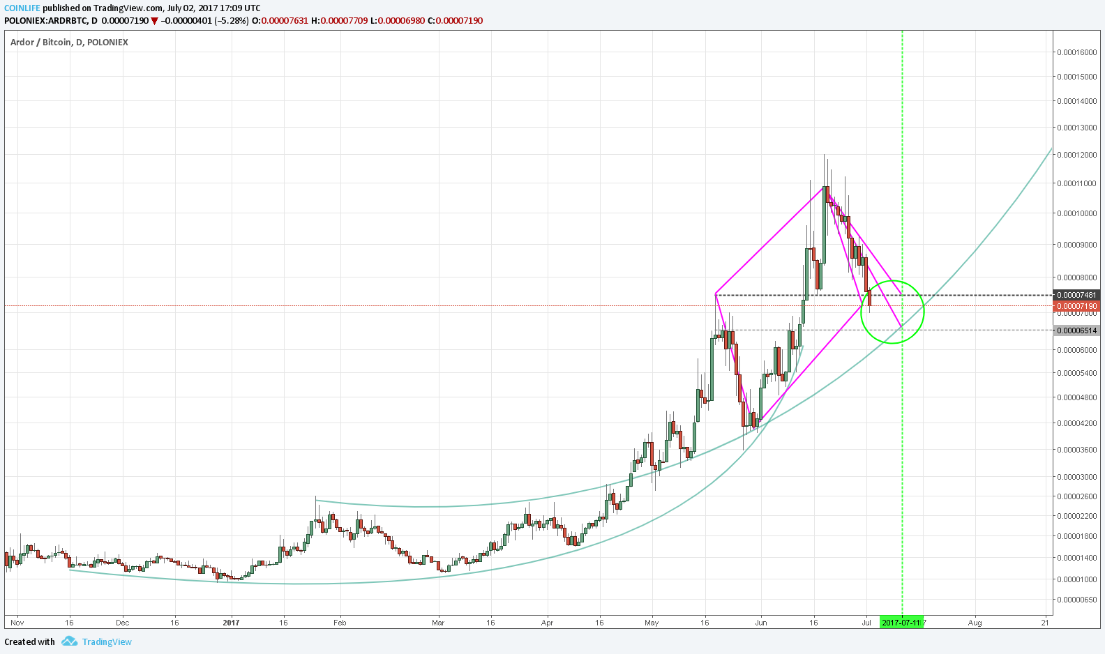 >Join our community, let's have a conversation.  >Welcome to the Weekly Crypto Market Roundup, Every week I go through the (TOP 40ish) Cryptocurrencies (mainly chart analysis) alongside my personal take. On Fridays, I update the TOP 10 and 5 every day after. My analysis is long-term investment grade analysis and although I recommend a lot of buys and sells, I don't invest in all (very picky). You can see the ones I'm invested in at the bottom of this page (COINLIFE PORTFOLIO). -daverex >I want to help build a community of knowledge, we are still in the early days of this tech revolution. Please ask any question and I will see to point you in the right direction. Also If you have any chart requests, I am happy to provide them! #coinlife <center>  </center> # SIACOIN (SC)  https://www.coinigy.com/s/i/5958e1dde6fb2/ >Siacoin broke down from it nice upward trend (seems to be common currently with bitcoin in a down-cycle) #  Gnosis (GNO) https://gnosis.pm/ 6-27  https://www.tradingview.com/chart/GNOBTC/km18BWAe-Gnosis-GNO/ 7-2  https://www.tradingview.com/x/Ph0JsPZo/ > WOW - 100% gain on this baby ... anyone take the trade? # BITCONNECT (BCC)  https://www.coinigy.com/s/i/5958e4bee31c6/ >Not enough back-data to make a prediction :( # ICONOMI (ICN) 6-25  https://www.tradingview.com/x/NLJryirI/ 7-2  https://www.tradingview.com/i/coJrHPlb/ > 6-25 - price is expected to drop to the next point on the graph, if that point holds expect a triangle formation. >> Based on current crypto-market conditions where every coin is just dropping like rocks (following the leader)... I'm expecting a down cycle into August for this coin. # Augur (REP) http://www.augur.net/ 6-26  https://www.tradingview.com/chart/REPBTC/lFaJB9ah-AUGUR/ 7-2  https://www.tradingview.com/i/ncRgJeb8/ > A nice little profit if you all took the risk ... i did not. I don't expect this trend to hold. # DOGE  https://www.coinigy.com/s/i/5950111de6525/ >6-25 - In my opinion Doge is a sh!tcoin/copycoin... I don't see any real value in it long term except for the fact that it has a nitch community behind it. >> Projection is long term and unchanged LISK (LSK) 6-27  https://www.tradingview.com/chart/LSKBTC/3pDW6F77-LISK/ 7-2  https://www.tradingview.com/x/c4YV7ZLF/ > 6-27 Since the former trade didn't work out thanks to the crypto bloodbath ... a new projection has been forced... I'm now expecting a 50% correction in LISK and although bitcoin will also drop... lisk may drop faster... good luck friends. I'll be back in sometime next week. >> 7-2 - I'm waiting to see where the best buyback time will be... July 17th may be a good time to get in, we will see if its enough... # STELLER LUMENS (XLM) 6-25 https://steemitimages.com/DQmZTT5GECKkuBHV5nKTg6fVV12hKF4pwrbwP45pX3stSFf/download.png https://www.tradingview.com/x/i48PXjD1/ 7-2  https://www.tradingview.com/x/sAs95vde/ >6-25 I am not and would not be invested in steller right now! >> 7-2 There appears to be a short term pullback opportunity (in reload zone) ... I'm not one to take that risk. #  Byteball (GBYTE) https://byteball.org/  https://www.coinigy.com/s/i/59529425ee291/  https://www.coinigy.com/s/i/5958f1863bc9c/ >unexpected upward bound move. # GameCredits (GAME) http://gamecredits.com/ 6-26  https://www.tradingview.com/chart/ARDRBTC/di5s3sSn-Ardor-ARDR/ 7-2  https://www.tradingview.com/x/JGIrRslO/ > Finally broke down, may be entering reload zone soon... we will keep an eye on this one! # Ardor (ARDR) https://www.ardorplatform.org/  https://www.tradingview.com/chart/ARDRBTC/di5s3sSn-Ardor-ARDR/  https://www.tradingview.com/x/LbgXKyMq/  https://www.tradingview.com/x/9NPfUNzX/ > Although in the daily chart Ardor is currently within buying distance and taking into account the bitcoin bear market, I wouldn't feel comfortable investing unless it drops to the new lower levels. #  MaidSafeCoin (MAID) http://maidsafe.net/  https://www.tradingview.com/x/sEaAvjC7/ > 6-27 looks like maidsafe will maintain and possibly increase in bitcoin value over the next few months... be careful with downside risk. >> Be careful that price does not break down through triangle and below .00016 # Factom (FCT) http://factom.org/  https://www.tradingview.com/chart/FCTBTC/7C7G2BcJ-Factom/ > 7-2 Price is still running down # Sub Requests Library Credits (LBC)  >I like LBC - I really want to invest ---> just at the right price ... I'm hoping that with this market pullback we can see .00005-10 btc <center>  </center> <center>  Invest at your own risk! Please Upvote and Share! Thanks </center>