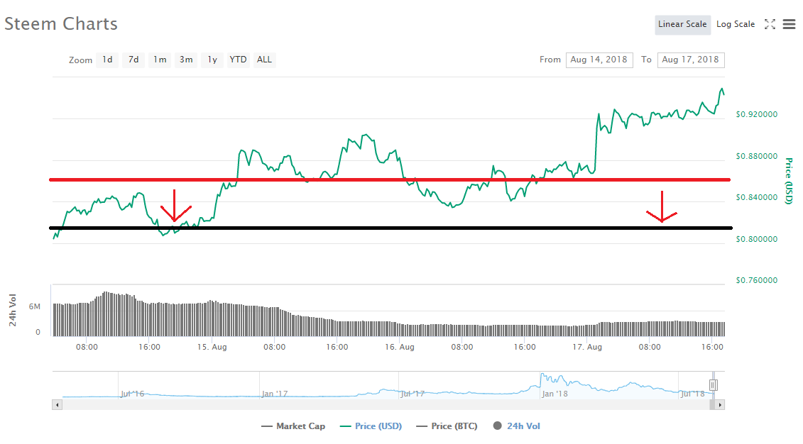 # How Are Steem Dollars "Backed" by the Steem Network? Most of you likely know that the Steem Dollar is a token that is "pegged" to the US Dollar, though most probably don't know exactly how it works. The Steem Dollar is "backed" by a smart contract which you can execute at any time. The smart contract used to be available on the Steemit.com wallet but was removed due to confusion. Today you can execute it in the CLI wallet using the convert_sbd command, and there are also web tools available which I won't link here. # What You May Think The SBD Contract Is ### "After 3 and a half days, you get $1 worth of Steem for each 1 SBD converted" - WRONG When discussing the Steem Dollar contract, it's often simplified to say that the contract gives you $1 worth of Steem per 1 SBD converted, but if you're going to use the contract it's important that you know that's a simplification. It's not precisely how it works, you CAN LOSE MONEY depending on various factors. If you're going to use the convert_sbd function you should know how it really works, so you can make an educated decision to use it or not. # What the SBD Contract Actually Is When you excecute the Steem Dollar contract, what you're really doing is making a bet. The bet is as follows: after 84 hours, the Steem price feed will be lower than the real Steem price I can sell it for. > >This is the Steem price feed. You can see it at any time on steemd.com The Steem price feed is based on witness reports on what the price of Steem is on the markets. It's a median of all reported prices during the last few days. In the image above you can see the feed price is $0.86. But if you check an exchange right now, you'll see that the real price of Steem, what you can sell it for at this time, is $0.95. That's 10% different! There are a number of reasons the price feed can be different from the real price. 1. It's a median price in a volatile market. 99% of the time, this is why the feed won't match the real price, which is not a median and can potentially change every minute. 2. Witness price feeds can be inaccurate due to bad data. This is likely rare, but can happen if witnesses are taking in data from exchanges that are reporting a false price. For example, BitHumb today trades Steem for almost $4, but you will not truly get $4 if you deposit 1 Steem on that exchange. Witness feeds are generally robust to this, but it's still possible for feeds to be corrupted in this way, especially if witnesses are using the same methods to report price. 3. Witness price feeds are inaccurate due to dishonesty. Thankfully this is very unlikely, because of #1. We use a median price because it is robust to cheating, but it also means the feed will almost always be somewhat inaccurate. Here's a case of where you win due to the volatility factor:  The red line represents the median price during the period. You win because the price at which you sell at the end ($0.96) is higher than the rate that the Steem blockchain gives. In other words, you get more than $1 worth of Steem per SBD. Here's another case where you would lose. The price at the end is $0.80 but you're given Steem at a higher rate, which means you get less than a dollar's worth per SBD.  # But what if Steem Dollars are below $1? If you buy SBD for less than $1, it doesn't change the fact that using the conversion option is a gamble. What it effectively gives you is an edge. Gambling with an edge in your favor becomes reasonable as long as you make many bets. An edge is a great advantage if you make hundreds or thousands of bets, but only a small thing for any particular bet. You can still lose with a 5% edge. Here are the two above bets with an edge for buying at $0.95 factored in:   ### Finally, there is another edge which may work against you Steem Dollars are typically only below $1 during a bear market. The nature of a bear market is that prices tend to be lower as time goes on. Therefore, you should expect some bias for prices to be higher at the start of your conversion process than at the end when you get the payout. How large this bias is, is something you need to work out for yourself before doing a conversion.