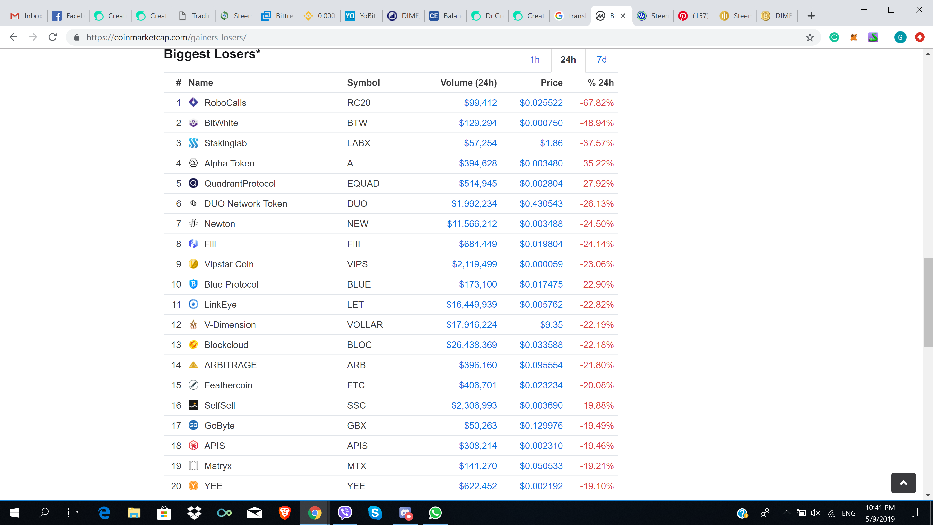 The Biggest Losers In The World Of Cryptocurrency For 09.05.2019