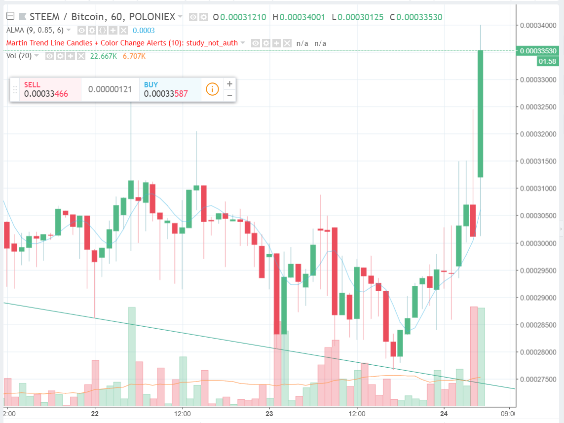 Steem up 5% in last hour while all other top 30's continue to fall - Anyone know why?