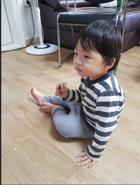 닭다리 뜯으며 텔레비젼 보는 손주 17개월 되는 손주는 닭다리 한개는 뜯어 먹는답니다. 아빠를 닮아 고기를 유난히 좋아합니다. 밥은 안먹고 고기로 배를 채운답니다. 먹성좋고 두실두실 잘 노는 손주를 보면 이게 행복이라고 생각 합니다. 자식키울때는 먹고 살기 바빠서 어떻게 키웠는지 모르고 손주는 여유로울때 보니 더 이뿐가 봅니다. 생각만 해도 웃을수 있는 손주는 우리가 살아가는데 에너지 입니다.