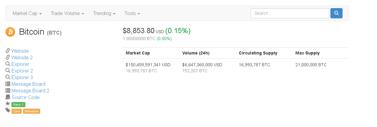 Bitcoin Price At $8,853 Right Now