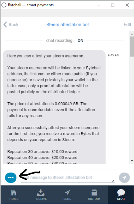 <center>https://cdn-images-1.medium.com/max/1021/1*PGsDFQ6cTGURe_zCsvzpIA.png</center> The Byteball Airdrop is an incredible opportunity to get in on the ground floor and receive an award of up to $160! The app should be working fine right now, but if you still have an issue getting the attestation to work, I'll show you how I got it to work for me. The rewards are based on your Steemit reputation score, it doubles with each level and it goes like this: <center>Steem reputation above 30? You qualify for a $10 reward</center> <center>Steem reputation above 40? You qualify for a $20 reward</center> <center>Steem reputation above 50? You qualify for a $40 reward</center> <center>Steem reputation above 60? You qualify for a $80 reward</center> <center>Steem reputation above 70? You qualify for a $160 reward!</center> # Download the Byteball wallet (If you don't already have it installed) * If you're new to Byteball, click this [link](https://steem-byteball.org/#IV4TRSR7BWQTGHD4V4O63DCSJ453BDGK) to download your very own [Byteball Wallet](https://steem-byteball.org/#IV4TRSR7BWQTGHD4V4O63DCSJ453BDGK) Once installed, you can find your receive address by clicking the "receive" tab at the bottom next to the "home" icon. Copy that long string of letters and numbers beneath the QR code, that's your receive address. Post your key in a comment below and I will send you the 50,000 bytes fee necessary to get your account up and running. # If you already have the wallet installed If you're not new to Byteball and already have your wallet installed and want to complete the attestation, click [here](byteball:A7SqDnEgwYOEhPDtJDZUVS4YtBfDwe42DVKGWaOX7pUA@byteball.org/bb#IV4TRSR7BWQTGHD4V4O63DCSJ453BDGK) to open the attestation bot. Once you see the 50,000 bytes in your account, click the "chat" icon at the lower right. There you will notice a "Bot Store" tab at the top, click that. That will take you to a list where you can scroll down to find (and click on) the "Steem Attestation Bot" # Here's where I got stuck For 2 days, I could not see the instructions to complete the attestation. Then, thanks to some handy tips from @punqtured and @jwolf I was able to move past that blank screen and get my reward! So, if you see a blank screen, do the following: * If you're in the chat tab, click the "back" arrow at the top left, then select the "contacts" tab. * Select the minus sign "remove new device" * Go back into the Bot Store and click "Steem Attestation Bot" again. You should now see the instructions. <center></center> At the lower left, you'll find the blue icon with the "..." (see arrow) clicking that and choose "Insert my address (Small Expenses Wallet)" Then hit that paper airplane send icon on the lower right and follow the instructions to login to steemconnect. Once complete, choose to store your username in "public" so others can send funds via your username. Click [here](https://steemit.com/steemit/@punqtured/official-byteball-airdrop-to-steemians) to learn even more. My main concern was to help get you past the issue that was preventing many people from completing this amazing airdrop. Byteball will also send me a referral gratuity for paying the fee to get you started. Congrats! You've now completed the airdrop. Check the home tab in the app to see your reward! # <center>Follow me @evernoticethat and UPVOTE</center> # Thank you so much! Image credit: [1](https://cdn-images-1.medium.com/max/1021/1*PGsDFQ6cTGURe_zCsvzpIA.png) https://steemitimages.com/DQmaiuGasc2vGC6wrf3Nu7Su5GTzNSx9UJGuApEhdjAZvzU/9.png **If you liked this post, please upvote it, resteem to your friends and follow me for more. You can also check out my most recent articles:** * [I LIKE TO WATCH #1 - Shot in the Dark: Life and Death in LA](https://steemit.com/life/@evernoticethat/i-like-to-watch-1-shot-in-the-dark-life-and-death-in-la) * [Put your Steemit Blog into OVERDRIVE! and Supercharge your Cryptocurrency Life](https://steemit.com/steemit/@evernoticethat/put-your-steemit-blog-into-overdrive-and-supercharge-your-cryptocurrency-life) * [Life Needs a Little Perspective Every Now and Then...](https://steemit.com/life/@evernoticethat/life-needs-a-little-perspective-every-now-and-then) * [The Best of Steemit #2 - @d-pend Your Mind’s Eye - Introducing The "Mad Chef" of Poetry!](https://steemit.com/life/@evernoticethat/the-best-of-steemit-2-d-pend-your-mind-s-eye-introducing-the-mad-chef-of-poetry)