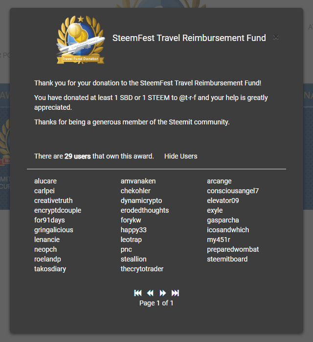 <center>  <h1> Would you like to go to SteemFest³?</h1> Then please consider donating, and besides helping a great cause, you are also increasing the chances of making a dream possible for many steemians, including yourself! </center> <center> Imagine the impact of this fund when everyone donates 1 SBD or 1 STEEM to @t-r-f! <h1>__1 STEEM!!!__</h1> Basically, full house on SteemFest³, and a lot more to plan for @roelandp =) hehe. By the way, I am donating __AGAIN__ all profits of this post to @t-r-f. My aim is to simply spread the word, so if you can recomend another user to donate, I already feel great. </center> <center>For more details about what is @t-r-f, read [this](https://steemit.com/steemfest/@steemitboard/steemfest-steemitboard-support-the-travel-reimbursement-fund) recent post. </center> <center> I have already done mine. </center> <center> <h2>Yes, you get a special logo!</h2> @arcange team does these via http://steemitboard.com (@steemitboard). Get yours __NOW!!!__ - donate 1 SBD/STEEM or more to @t-r-f!!! </center> <h4>You don't know how to donate?</h4> Easy peasy! Just head to `https://steemit.com/@<your_user>/transfers#` and choose one of the options (depending if you are donating STEEM or SBD), type the "Amount" to donate and validate you are entering the correct user, t-r-f (without the @ sign): <center> Add a "Memo" (optional) if you wish and click Next! The next step will ask you for the Active private key and after you send the transaction, you are DONE! </center> <center> __Check out how good it looks on the signature! =)__ Thanks, everyone, for supporting good causes like __SteemFest³__. *I can't go this year, due to personal reasons but let's see the next one. =)* </center> <center>[](http://steemitboard.com/board.html?user=forykw) [](http://steemitboard.com/board.html?user=forykw) [](http://steemitboard.com/board.html?user=forykw) [](http://steemitboard.com/board.html?user=forykw)[](http://steemitboard.com/board.html?user=forykw)[](http://steemitboard.com/board.html?user=forykw) [](http://steemitboard.com/board.html?user=forykw) [](http://steemitboard.com/board.html?user=forykw) [](http://steemitboard.com/board.html?user=forykw) </center> <center>Produce quality <strong>SteemCATAPOOM</strong>! <strong>RESTEEM</strong> if you wish to show others what you have learned... and, <strong>VOTE</strong> for <a href="https://steemit.com/~witnesses">Witnesses</a> I was one of them, <strong>[forykw](https://steemit.com/~witnesses)</strong>! <strong>Status:</strong> (disabled) - [10/03/2018](https://steemit.com/witness-category/@forykw/forykw-witness-suspended-until-i-find-a-more-efficient-way-to-help-with-my-resources) </center>