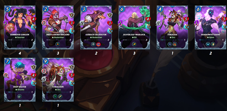 Las unidades favoritas en batallas son: Silverleaf Warlock(combinado con el invocador de tierra), Thragha (combinado con el invocador del elemento agua), Shadowfey Sheik, Deep Delver y Thraghun (combinado con el invocador del elemento agua).