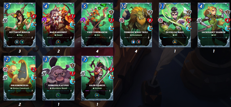 My most used cards of this element are: Fenmoor Wood Troll, Silverleaf Mage, Sacrosanct Shanke,r and Folen Flameye.
