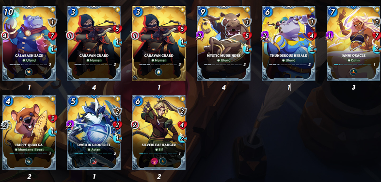 Me encanta usar este elemento; aunque lo combino mejor con otros sets, me gusta usar unidades: Caravan Guard, Mystic Mudbinder y Silverleaf Ranger.