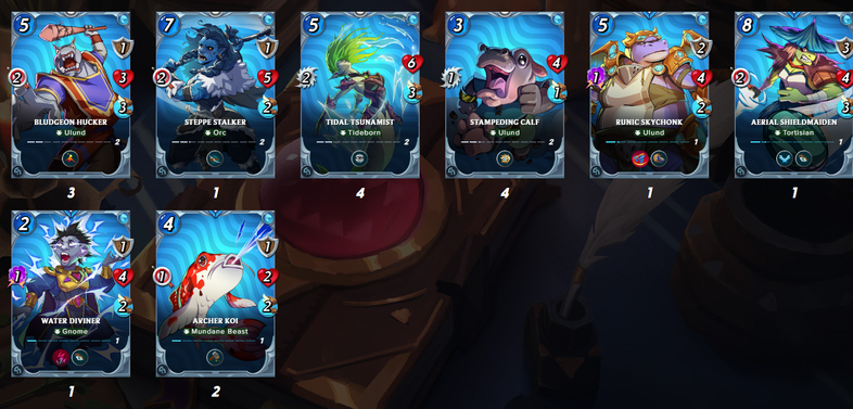 Las unidades que más uso son: Bludgeon Hucker(combinado con el invocador de vida), Steppe Stalker, Tidal Tsunamist y Archer Koi.