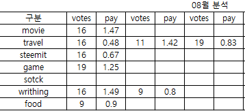 0.000 HBD8월 내스팀 (휴가라 travel이 유독많네요..)