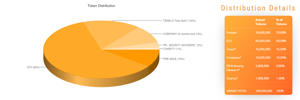 - 10% -ный токен (10 миллионов), выделенный для предпродажи.