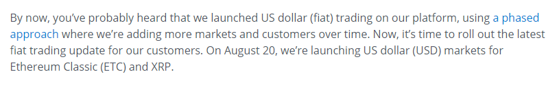 So this will end with USD markets for BTC, ETH, USDT, TUSD, ETC and XRP for chosen people (not everyone! for now!).