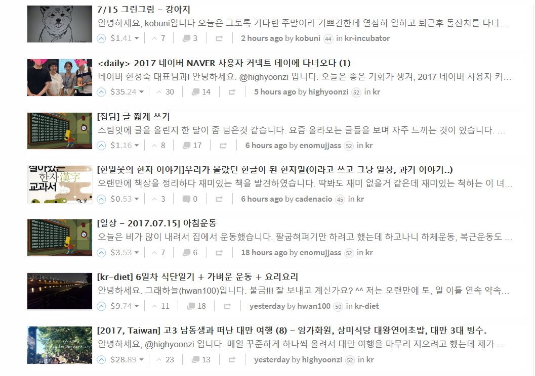 0.000 HBD일상 ] kr-dev / kr-daily / kr-pub 을 놀러 다니는데 생각보다 글이 안올라오네요. 아쉽게도..