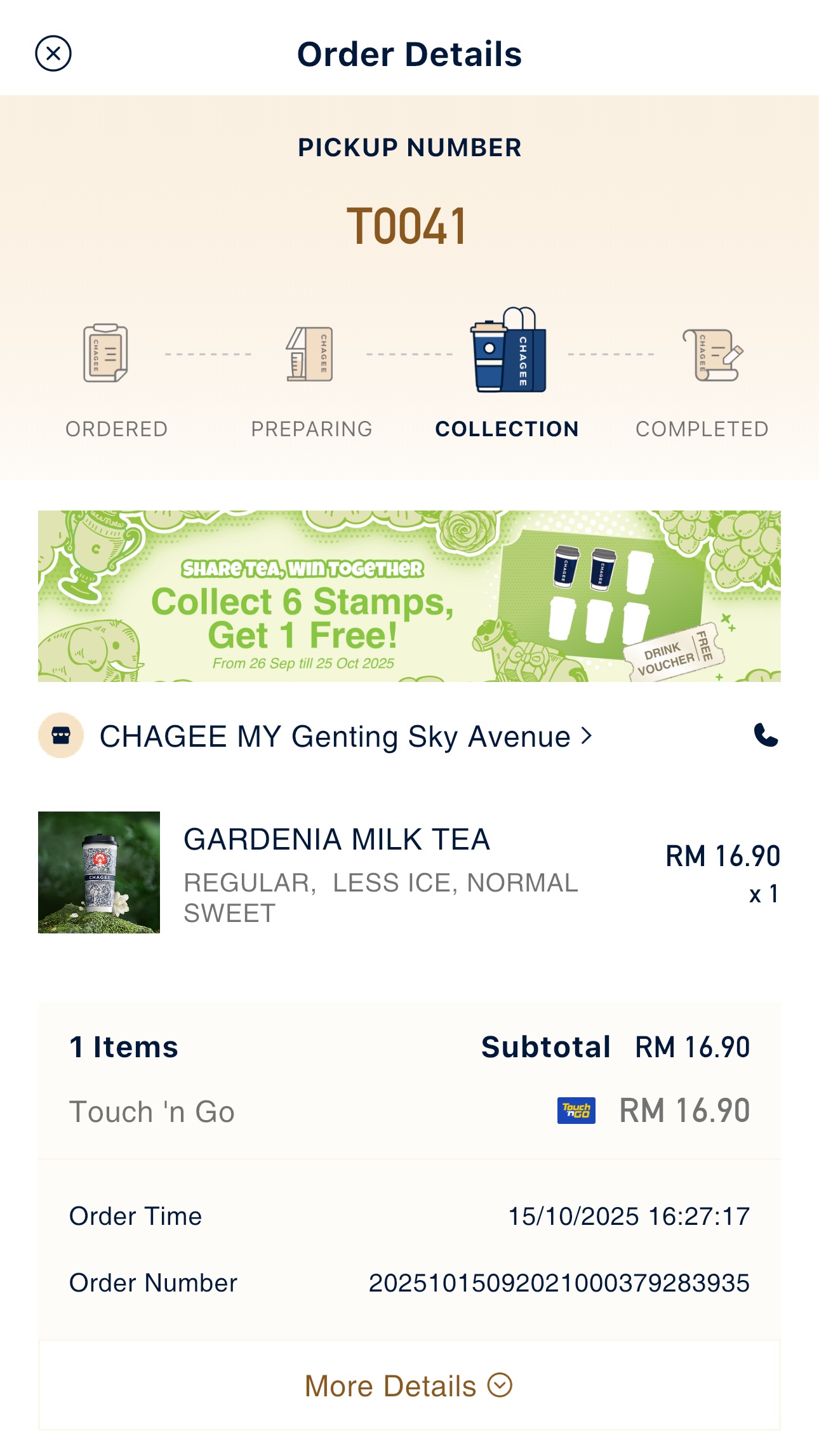 今年,有一间 **霸王茶姬** 的分店在「云顶高原」开张啦!这间在2025年2月开张的 **霸王茶姬** 瞬间就吸引了不少人前来打卡探店拍照。 我还记得在当时我日常刷 «小红书» 有刷到一则图文写着:「云顶竟然有霸王茶姬了!」 今年3月,**霸王茶姬** 还举办了活动,可惜的是当时我并没有去……  这间 **霸王茶姬** 位于云顶 Sky Avenue 的一楼,店内装潢偏好黄色风,整间店不小,环境也不错,设有饮用区和等候区。  店内做饮料的吧台也挺大的…… 昨天,我在手机里面下载了 APP【CHAGEE】,尝试用手机下单我想喝的奶茶。手机下单的话还能收集 "茶叶" (积分),累积 "茶叶" 能兑换折扣券或免费饮料券。 ||| |-|-| |选奶茶|付款&等待| 我点的奶茶是 **Gardenia Milk Tea** (山野栀子),小杯,少冰,正常糖。 **价钱:RM16.90**  拿到奶茶后还有附送个精美袋子,好看好看。  **山野栀子**,味道不会太甜,淡淡的茶香味,没想到还挺好喝的。 好久好久之前喝过『花田乌龙』和『伯牙绝弦』,那时我觉得这两种都不太好喝,可能不适合我的口味吧!  打开我的那杯『山野栀子』的盖子,里面是淡白淡白的颜色,还有泡沫在奶茶上面。 下次有机会再尝尝别的口味…… <center>© 𝟚𝟘𝟚𝟝 𝕝𝕠𝕧𝕖𝕝𝕖𝕞𝕠𝕟</center> <center>——————✣——————</center> |店家资讯|| |-|-| |店名:| **霸王茶姬 CHAGEE** <br> @ Sky Avenue | |时间:| 10:00 - 22:00 | |地址:| Lot T2-13A, Level 1, Sky Avenue, <br> Genting Highlands Resort, <br> 69000 Genting Highlands, <br> Pahang, Malaysia. | [//]:# (!worldmappin 3.42415 lat 101.79469 long Chagee @ Sky Avenue d3scr)