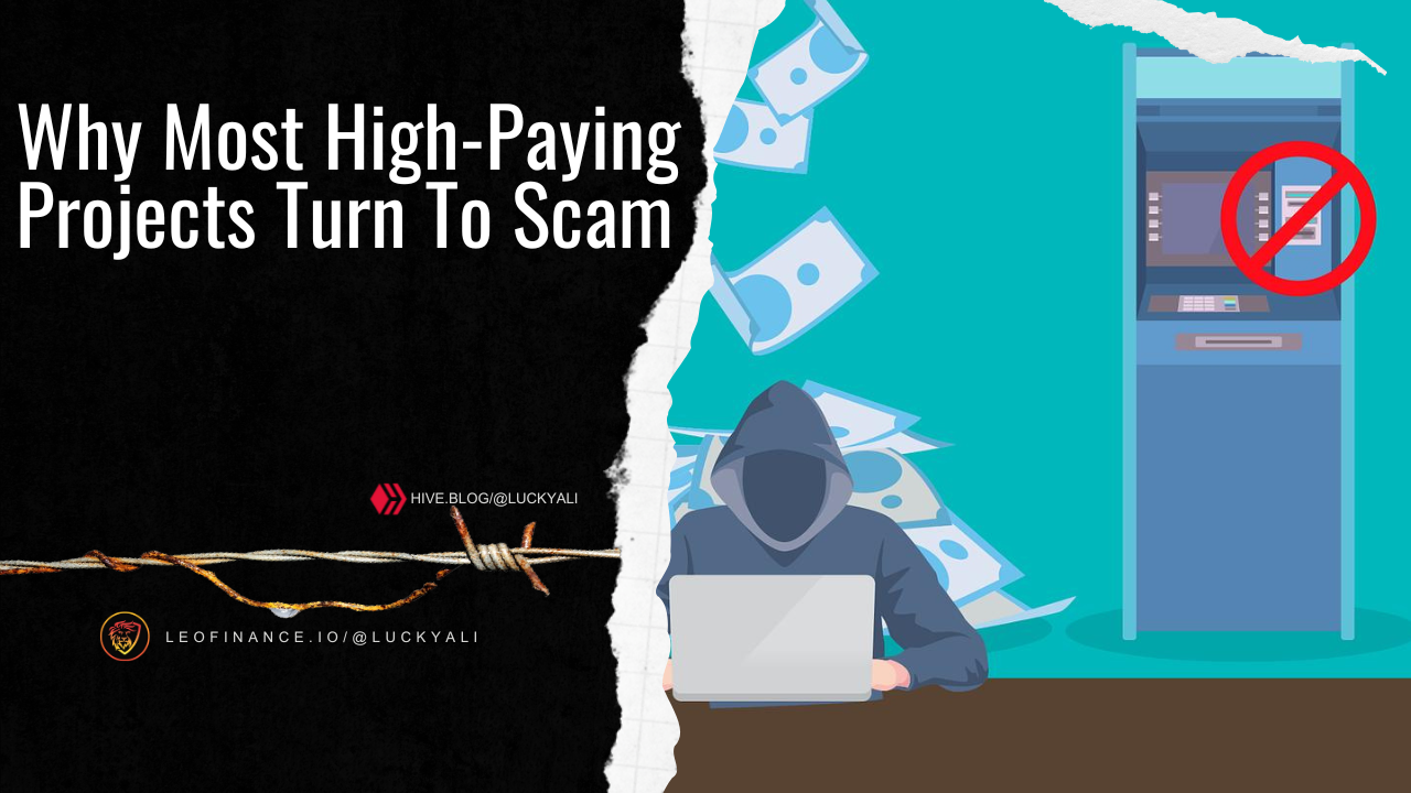 _____________________________________  _____________________________________ I have a message for those who always run behind high-paying projects. A project with sustainable income is the best for you. Income should be not so high and not so low. I am talking about every project and that can be any use case, especially in crypto. When you see the [hive](https://leofinance.io/@leoglossary/leoglossary-what-is-hive) project you can find many qualities here First it is decentralized so if you have created the account here then you are the owner of the platform. _____________________________________ High-paying projects are like a cheap investment scheme with huge returns. In the hive, There is no single entity that can scam by using the hive platform. No one is forcing you to do investment here however if you can do then you have good benefits. So if you want to see a very good project then Hive is here for you. Scam projects provide 100% to 200% return even in one month and the greedy people dive into it. Just think about it how it is even possible? _____________________________________ Let's say even if they are doing trading (forex, stock, or crypto), trading is also not a field that will give you profit every single time. This type of high-paying project is not sustainable. I joined the Tron project almost one year ago. There was no use case but it was like investing and earning [APR](https://leofinance.io/@leoglossary/leoglossary-annual-percentage-return-apr). As long as there is investment, there is income. Later, when the investment starts decreasing, the fund in the wallet starts decreasing and withdrawal starts pending. This is exactly what happened to me. I joined that platform 3 months after the launch and after a week it was running out of funds to make withdrawals. So I lost my [money](https://leofinance.io/@leoglossary/leoglossary-money) on that project because of my greed for high earnings. _____________________________________ So greed is dangerous. Actually, my friend forced me to join that platform otherwise I avoided unrealistic return websites. Some scam projects have their own people to give reviews and they pay for this work. When we see good crypto projects the first thing they have to show is transparency. From where they are making money and what is the business idea. [HBD](https://leofinance.io/@leoglossary/leoglossary-hive-backed-dollar-hbd) savings feature gives us 20% APR still many people saying that how it possible. And many users raise a question and say this is not sustainable. However, HBD is a decent coin to earn 20% APR. _____________________________________  _____________________________________ Simply avoid the high-paying projects and this way you will be able to save your important money from loss. And even if you have extra money to invest then invest in Hive because in the next [bull](https://leofinance.io/@leoglossary/leoglossary-bull) run Hive has a potential to reach up to $5 to $10. So that's all I want to say do not forget to give your opinion below. share and reblog this post as well. _____________________________________ Thank you, everyone. _____________________________________ Lucky Ali ______________________________________ *Image source [1](canva.com), [2](pixabay.com)* ______________________________________ Posted Using [LeoFinance Alpha](https://leofinance.io/@luckyali/why-most-highpaying-projects-turn-to-scam)