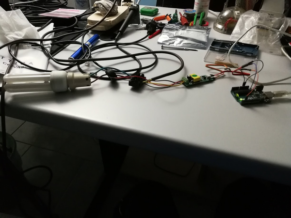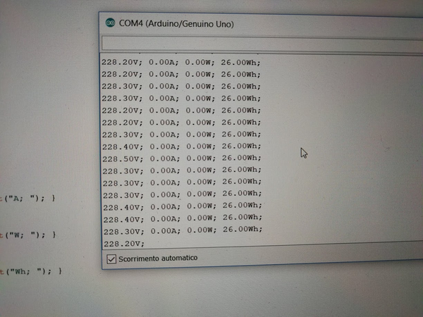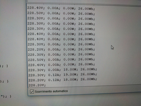 Dopo una *piccola pausa*, dovuta a cause di forza maggiore, ritorno finalmente a parlare del mio sistema di **Home Automation**, sempre *work in progress* <center>  *[Immagine CC0 creative commons](https://pixabay.com/en/energy-efficiency-energy-154006/)* </center> In particolare volevo parlarvi dei primi test che ho fatto per implementare un sistema di misurazione dei consumi elettrici, da affiancare a quanto già fatto per il monitor della produzione del mio impianto fotovoltaico (trovate a questo link il relativo post https://steemit.com/technology/@marcolino76/home-automation-system-monitor-produzione-fotovoltaica) Quello che sto cercando di fare è un qualcosa che sia facilmente integrabile in **OpenHAB**; non mi servono quei sistemi che vendono completi di display perchè il mio obiettivo non è quello di fare delle verifiche *manuali*, ma piuttosto acquisire i dati di consumo per poter fare delle analisi, tenerli sotto controllo in remoto (senza il bisogno di essere sempre davanti al dispositivo...) ed eventualmente far scattare avvisi e/o notifiche... **OpenHAB**, insieme a **Grafana**, ci permette di fare tutto questo in maniera relativamente semplice...la cosa fondamentale è quella di fargli arrivare i dati... ...ovvio direte voi...e come darvi torto...😎 Il mio risultato finale dovrà essere un *qualcosa* in grado di leggere i consumi di casa, interfacciabile con **OpenHAB** tramite rete e relativamente piccolo per essere inserito in qualche scatola di derivazione... Nelle mie ricerche su internet mi imbatto nel contatore **Eastron sdm120c Modbus**... Un gran bel prodotto...che permette attraverso seriale **RS485** la lettura di tutta una serie di parametri energetici, tra cui tensione, corrente e potenza...Essendo una lettura tramite protocollo seriale si può interfacciare ad **Arduino** e/o **Raspberry** per leggere ed inviare i dati. Non è proprio un dispositivo economico, ma al momento di meglio non ho trovato. Non è piccolo ma è montabile nei quadri elettrici. Ero ormai quasi deciso a comprarlo quando per pura combinazione trovo un prodottino che potrebbe fare al caso mio...il **PZEM-004T Energy Module**, un piccolo dispositivo che, attraverso una pinza amperometrica, è in grado di leggere il consumo di corrente che passa attraverso una linea di fase...mette a disposizione una porta seriale per leggerne i dati, quindi è interfacciabile con **Arduino** / **Raspberry** e/o simili, ha dimensioni ridotte e soprattutto costa relativamente poco...sono riuscito a portarlo a casa con circa 8€ spedito... <center>  [*Immagine dell'autore*] </center> Per adesso ne ho comprato uno solo...se i test vanno a buon fine ne prenderò altri...il mio obiettivo finale è quello di avere il monitoraggio indipendente dei 3 piani di casa...avendo un quadro elettrico su ogni piano, non devo far altro che intercettare la fase principale ed agganciare la pinza amperometrica...il resto lo farà il microcontrollore che lo affiancherà in questo *duro lavoro*. L'ideale sarebbe utilizzare uno dei tanti **Esp8266 NodeMCU** che ho già "*a magazzino*"...con il Wifi integrato e le dimensioni ridotte (così come il costo...) sarebbero la soluzione ideale! Se non risulterà compatibile, ci sarà sempre il solito **Arduino** a venirci in aiuto...anche se poi dovrò risolvere il problema del collegamento alla rete. Sì, perchè i dati verranno trasmessi ad **openHAB** tramite protocollo **MQTT** Bene, non rimane altro che fare qualche prova...iniziamo con **Arduino** così il test è più facile, anche perchè si trovano schemi di collegamento e software già fatti in rete...una volta appurato che il dispositivo funziona, proverò con il **NodeMCU**. Il dispositivo dev'essere alimentato da un lato in bassa tensione con i fatidici 5V, mentre dall'altro (il lato di potenza) necessita della 220v. Iniziamo i collegamenti con **Arduino** - **GND** e **5V** da **Arduino** verso il dispositivo; - uscita seriale dal dispositivo verso due ingressi digitali di **Arduino** <center>  [*Immagine dell'autore*] </center> L'altro lato del dispositivo invece vuole la connessione con la pinza amperometrica e la 220v. Per fare i test ho preso un portalampada con fase e neutro *a vista*, in modo tale che alla fase possa agganciare la pinza di misurazione. Il tutto termina con una normale spina. <center>  [*Immagine dell'autore*] </center> Scarichiamo un software molto semplice per **Arduino**, che stampa sulla seriale i dati letti. Ecco l'output con luce spenta (lampadina svitata)...zero corrente, zero potenza: <center>  [*Immagine dell'autore*] </center> Avvitiamo la lampadina, che si accende... <center>  [*Immagine dell'autore*] </center> e sulla seriale di **Arduino** si vede il rilevamento della potenza... <center>  [*Immagine dell'autore*] </center> Accendo e spengo la lampada più volte per verificare che tutto funzioni...OK, ci siamo...i primi test sono andati più che bene... Prossimo step sarà quello di provare ad utilizzare un **Esp8266 NodeMCU** al posto di **Arduino** e poi iniziare ad inviare i dati ad **OpenHAB**. Se tutto funzionerà correttamente penso proprio che ne comprerò almeno altri due...ed inizierò ad inserirli nel mio impianto