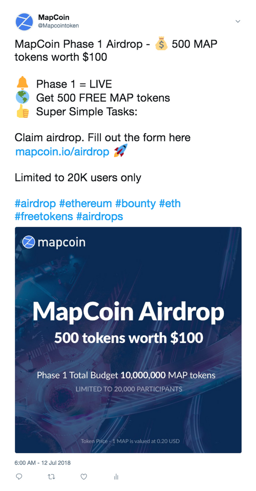Airdrop kryptowaluty mapcoin free 500 MAP Tokens