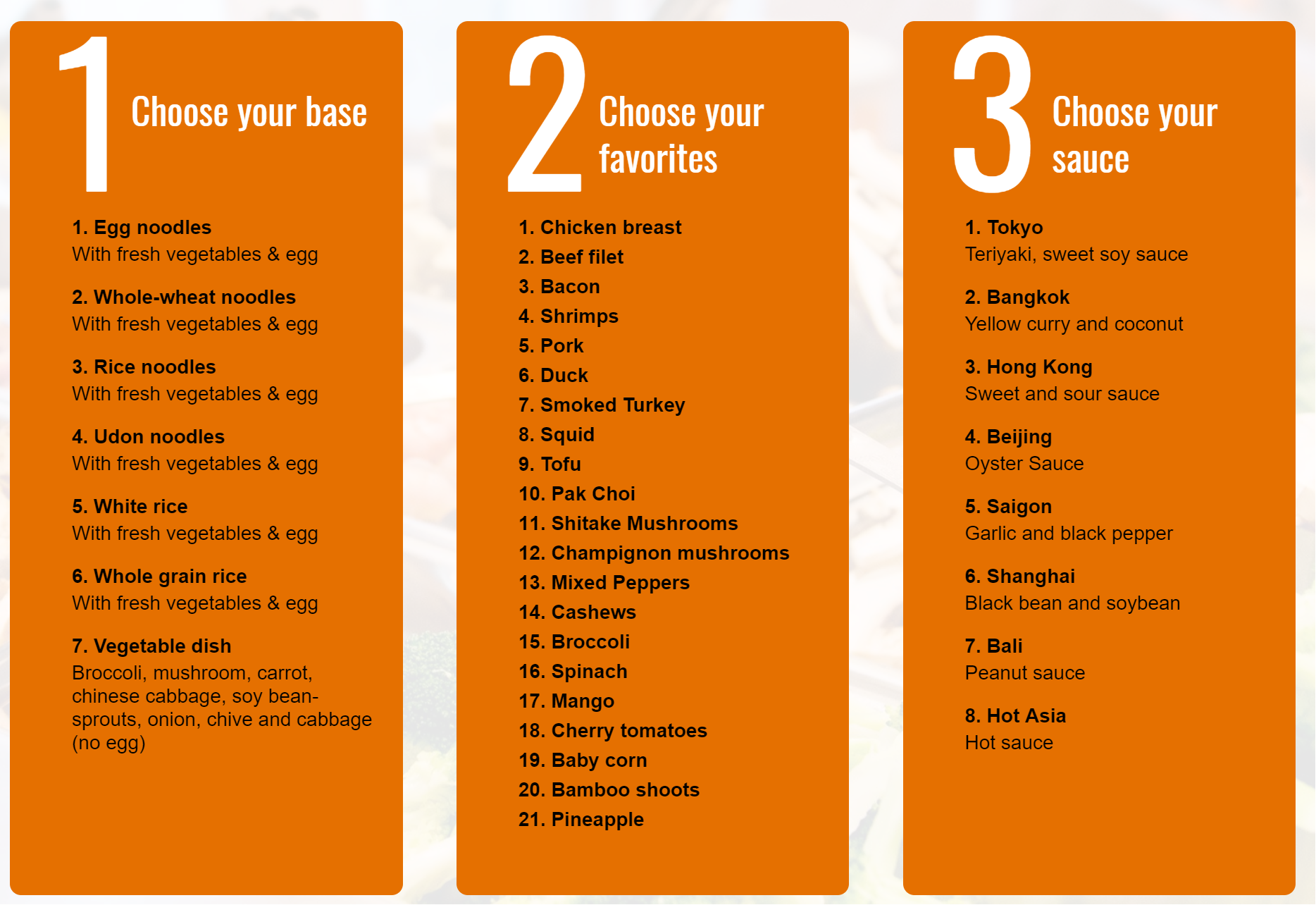 I first discovered *Wok To Walk* on my travels to Portugal a couple of years ago and since then it has been my favorite outlet for a noddles fix! So on my travels to Amsterdam last week, I was pleasantly surprised that there were several *Wok to Walk* located within the city and so was looking forward to indulging.  The reason why I love this restaurant so much is that, it offers great healthy vegetarian options that is custom made in front of you!    Of course *Wok to Walk* also caters for meat lovers as well, but they are one of the few outlets that offer such variety and balance. They have a simple 3 step menu where you select your base noodles or rice, other favorite ingredients and a sauce:  And within minutes the Chef will prepare the perfect noodles or rice dish to: Eat in...  or take away...  I certainly did indulge by both eating in and doing a take away!   My favorite is hands down is a combination of: Whole-wheat noddles base, with Tofu, Mixed Peppers, Cashews with Hot Asia sauce with fried onion flakes sprinkled on the top! Several *Wok to Walk* restaurants have now opened up in London, so look forward to more noodle fixes more often :)