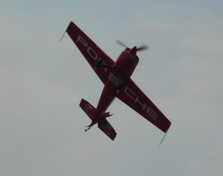 The main sponsor of this professional aerobatics pilot and plain. -  There just has to be a red Porsche. -  Showing off on the ground. -