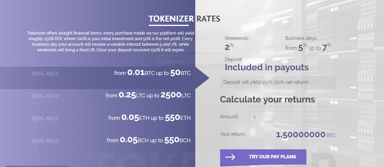 I am earning Daily 5 to 7% on Business Day and 2% on weekends with TOKENIZER  Tokenizer platform is geared towards global investors helping them to tap into an ever growing crowdfunding market using Blockchain digital tokens. There are many new projects surfacing daily in the main crypto-related sites offering their tokens (basically a share in the company) for sale, but one needs to be very selective as many of these fail to deliver good results and some turn out to be completely useless. Tokenizer has been developed as a response to the need of weeding out the best projects with real inherent value and use in real life. Tokenizer enables users to start investing into a tokenized economy by directly paying for a custom plan using Bitcoin, Ethereum, Litecon or Bcash crypto currencies irrespective of the size of their investment portfolio. Funds received from users are used to purchase digital tokens during token pre-sales (discounted offers available to institutional investors or pool managers) and are sold later with a profit to insure all users receive up to 50% net on each investment made. > HOW TOKENIZER WORKS Tokenizer platform is built to help users increase their exposure to tokenized economy (ICOs) with a minimum risk while their profit is fixed at 50% net per investment cycle. You can use any of the accepted virtual currencies like Bitcoin, Ethereum, Litecoin or Bitcoin Cash to pay for the customized plan. Once funds are transferred into Tokenizer account the system is tuned to handle micro as well as larger investments thus offering lower fees and better prices than traditional banks. Users start receiving daily earnings which are added daily to their accounts and they are free to withdraw them to their crypto wallets  > I have invested 0.027 BTC with Tokenizer and Getting Daily Profit without any hassle . Here is proof  For more details visit https://tokenizer.biz/ref/1387