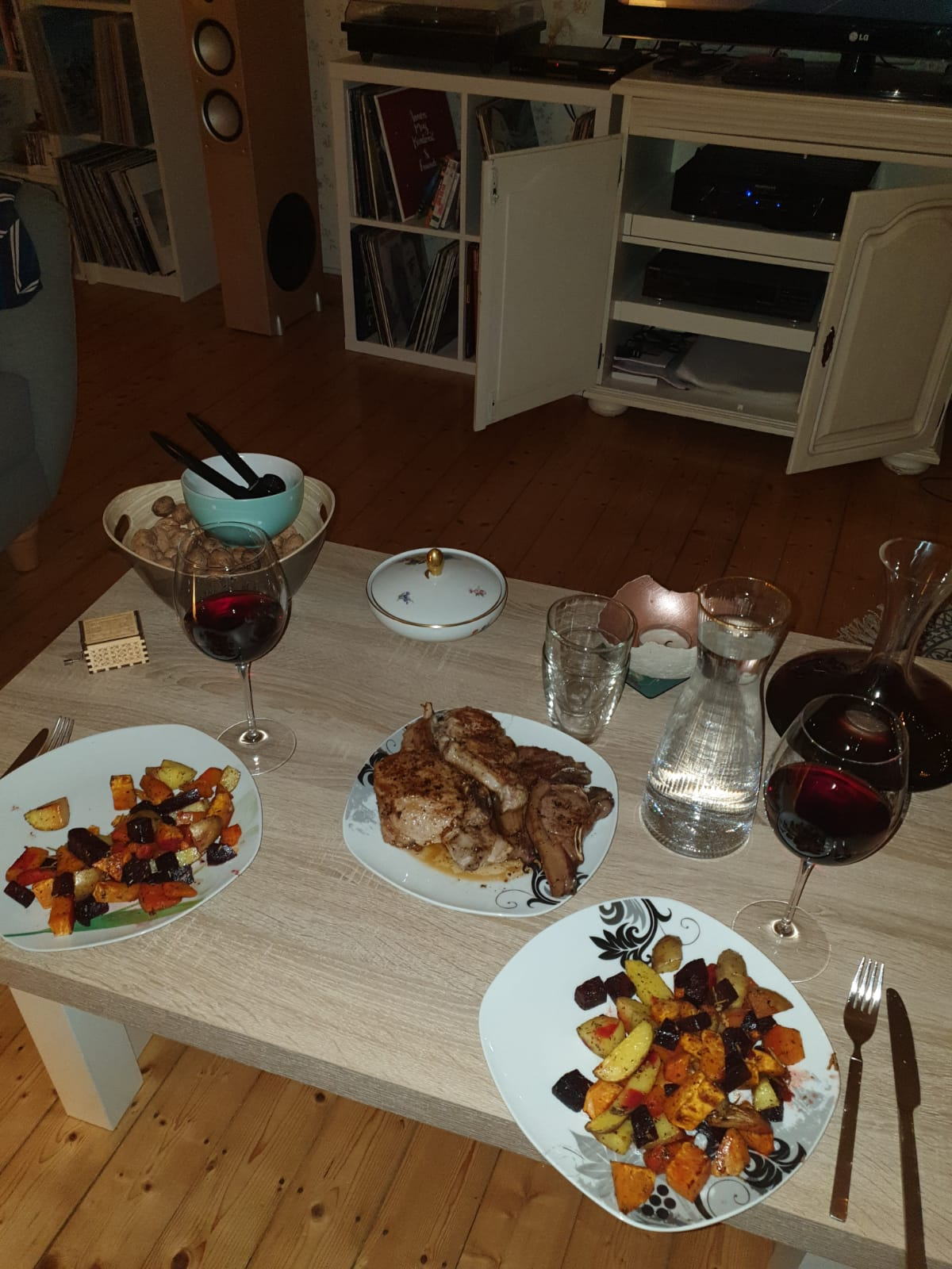 A good friend of mine always says: `You got to treat yourself a little!’ and this is what my girlfriend and me did this week. Opening an old bottle of wine that laid in the shelf for a couple of years, buying some delicious meat and making some roasted vegetables with garlic.   We also watched The Lord of the Rings because my girl has not seen these movies before. This was basically a perfect night! -------------------------------------------------------------------------------------- Alter Wein, Fleisch & Ofengemüse: Ein guter Freund von mir behauptet, dass man sich auch öfters etwas gönnen müsse und genau das haben meine Freundin und ich letzte Woche gemacht. Eine alte Flasche Wein öffnen, die schon zu lange im Schrank liegt, ein wenig gutes Fleisch einkaufen und Ofengemüse mit reichlich Knoblauch zubereiten.   Nebenher haben wir angefangen die „Herr der Ringe“ Trilogie zu schauen, da meine Freundin diese noch nicht gesehen hat. Einfach nur ein perfekt verbrachter Abend!