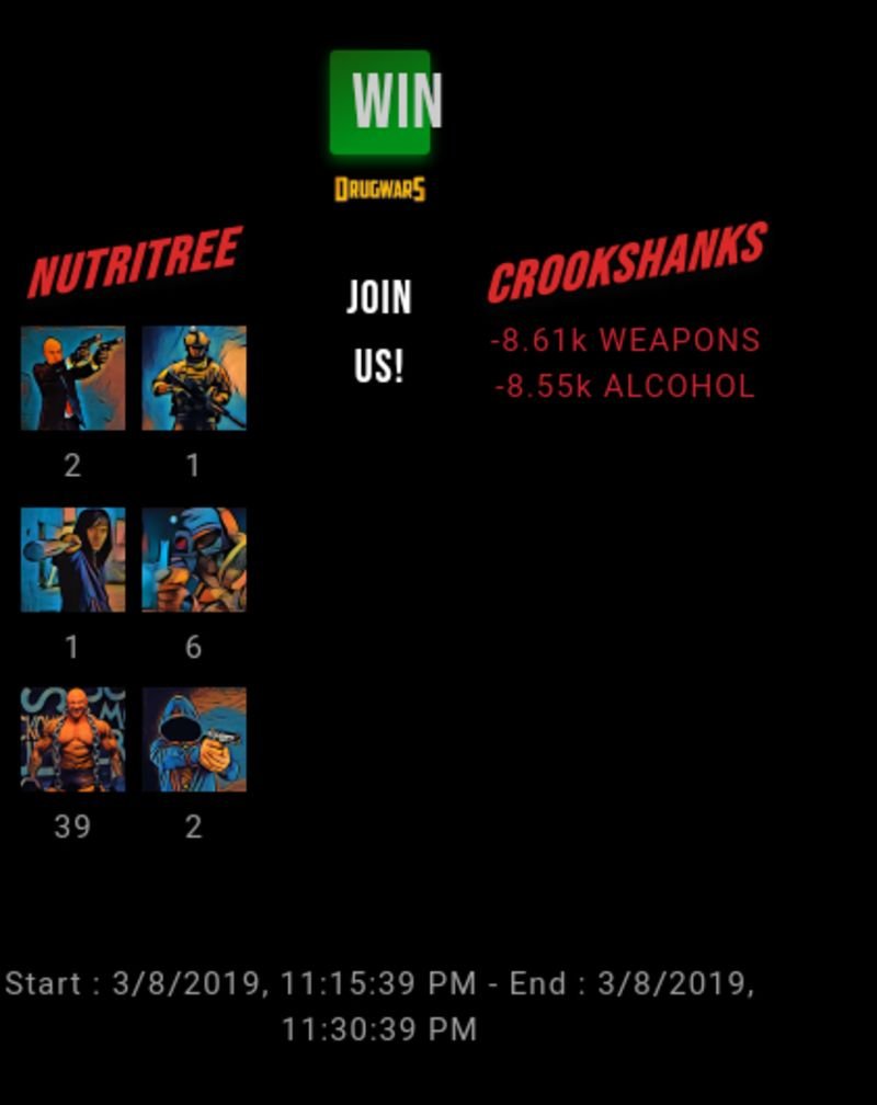 There is no where to post a comment when you click the share button. This is what it looks like. Get to farming even if you are small. I dont believe there is any basic defense. I need to attack with one rowdy to find out. [](https://drugwars.io/i/nutritree)