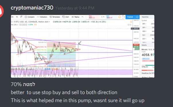 Ive opened a crypto signal group on discord which you can join to with this link : https://discord.gg/edQp2yR right now its free! so join now and tell your friends :) I want to post here my last forecast from yesterday 21:45pm:  As you know bitcoin hit the major new triangle resistance and has dropped to 3970 before it retraced back up to 4010 area! another thing, we should all just have a good look at is this :  I think it puts this new uptrend into perspective.. I also want to say that this is not a financial advice and Im not a financial advisor so do your own due delegions when investing, especially on Bitmex leverage trading as it is en extremely high risk platform. I only show what im doing for all of you who may be interested so I hope you enjoy Thanks alot, Cryptodad