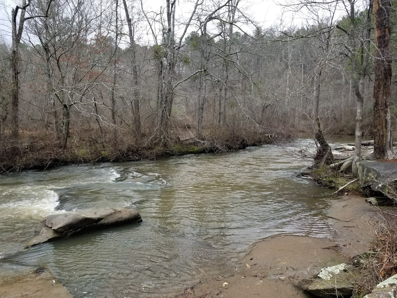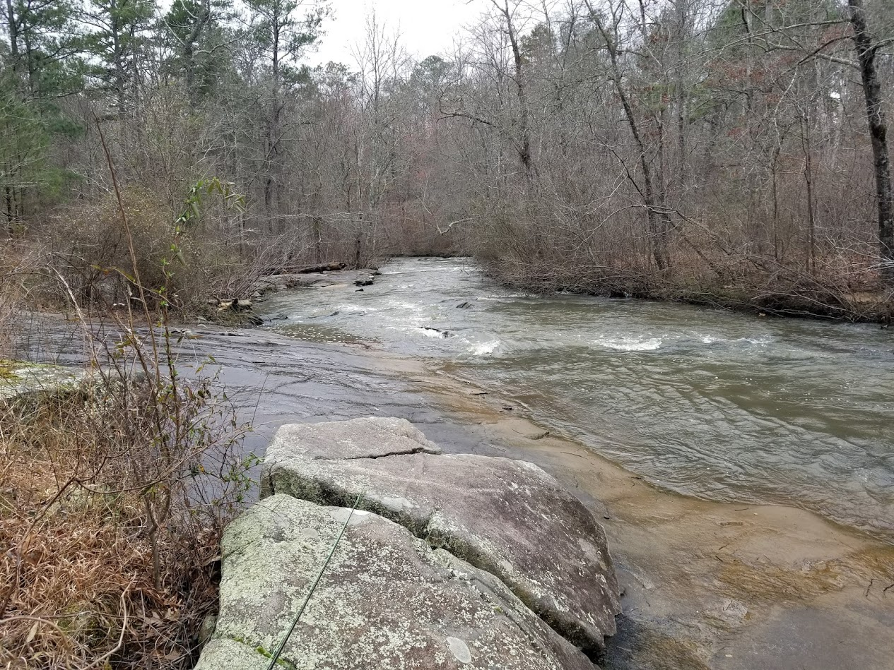 > All That Is Gold Does Not Glitter, Not All Those Who Wander Are Lost -Tolkien *** # Walk With Me - Hiking Line Creek Again  <sup> *Line Creek in all it's glory!*</sup> --- Well I didn't have much time available, so driving up to the mountains was out of the question. Instead, I hit my go to spot when I need some time with nature and water. I dearly miss the ocean(even after 10 years), but this is definitely a great substitute. [Line Creek Nature Area](https://sctlandtrust.org/work/line-creek-nature-area/) is a great little park hidden within the city of Peachtree City, GA, a stone's throw from Atlanta. I guarantee thousands of people pass by this place on a daily basis and never realize what a relaxing retreat they have. The entrance to the park is somewhat low-key and you will definitely miss it if you're not looking for it. The parking area is a large gravel bed and there are a few port-a-potties located here for your before and after hike needs. Funding trickles in from budget year to budget year and there a many improvements planned for the future. <div class="pull-right">https://steemitimages.com/DQmQMhsJ79m94LJJmhfTUkTErHdVBkt2zH9tCS98FoeMs1z/image.png</div> As you leave the parking lot, you enter the trail head that has a beautiful, smallish fishing pond on the left and a rough log amphitheater to left. I have never seen anything advertised for the amphitheater, but I would adore seeing some of the 'ol Bard being presented by torchlight. I saw *A Midsummer's Nights Dream* once performed at night in a park in Jacksonville, FL and it was absolutely magical! I've tried fishing the small pond on the right, but to no avail. I think it is probably heavily fished due to the ease of access. There is also a covered gazeebo and several picnic tables to eat or rest while visiting. <div class="pull-left">https://steemitimages.com/DQmejryXGa3P4tFY8h3UdvvzrjTSEMEY5wAyJGd2g99BZYL/image.png</div> Just past the pond and theater, there is a choice of trails based on difficulty and how quickly you want to get to the main section of the creek to rest. We always go right for a bit more challenging, less traveled hike that takes you around the back side of the fishing pond, through a few switchbacks through the forest, and finaly upstream quite a ways before coming back downstream. This way is not only longer and more secluded, but it offers more chances to catch fish along the way. There are a few fairly steep incline and declines along the way, but most people would consider them mild to moderate. The wooded area along the pathways are extremely thick and dark during the spring and summer, but they take on a more skeletal look during this time of year. ---  --- The creek finally starts to peek through the underbrush and foliage to bend it's way to a fro like a meandering snake on a cool summer's evening in the south. Today the creek is rather high and a bit muddied due to recent heavy rains. These conditions make it difficult to fish and(spoiler alert) we got skunked today...lol. ---  --- We, nevertheless, continued along the trail to keep trying to prove our luck wrong. This next shot struck me as extremely beautiful if it were not for the garish paint on the middle tree marking the way. But these markers are here for people just like me who could get lost in a store parking lot! The picture doesn't do it justice, but it was if you were walking through a portal with the branches and limbs hanging over you, almost like a fairy archway used for elvish matrimonial ceremonies. ---  <sup> *Fairy Archway*</sup> --- After the archway, the trail continues, for the most part, along the creek side. I love the many twists and turns along the creek's path. It give the feeling of new adventures and surprises around each turn. As you are walking the creek will be out of sight and then you turn a corner and....**_bam_**.....there she is again in all her majesty. ---  <sup> *Rounding the bend*</sup> ---  <sup> *She's running quick today.*</sup> --- Normally the creek is not as high and fast as it is today. The lower water levels reveal numerous stepping stones and outcroppings to help you get that perfect cast in the middle of the stream. Some of the larger outcroppings are perfect for taking a break or enjoying a picnic lunch as you are lulled to peace by the soft song of the water passing by. ---  <sup> *Nature's Lunch Counter*</sup> ---  <sup> *This makes a perfect sliding rock during the summer!*</sup> ---  --- The hardest leg of the hike is the final push back out to the parking area. The trail leaves the creek and turns sharply uphill on uneven granite outcroppings that would make a mountain goat look like a Saturday night drunk! I always end up winded, but thankful for the opportunity to have enjoyed the creek again. It is always a pleasure to play at Line Creek and it is always a bit depressing when it's time to go. Like leaving a good friend even though you know you will see them soon. --- Check out these other #walkwithme posts! ## [Plants of the Far Eastern Forests](https://steemit.com/walkwithme/@fareast-history/plants-of-the-far-eastern-forests) by @fareast-history ## [No #5 WalkWithMe A Day on the Beach](https://steemit.com/walkwithme/@hatemmkh/no-5-walkwithme-a-day-on-the-beach) by @hatemmkh ## [Seeking Out Australian Native Orchids #82 - Werakata NP, NSW](https://steemit.com/photography/@carrinm/seeking-out-australian-native-orchids-82-werakata-np-nsw) by @carrinm *** ## WANT MORE VOTES AND FOLLOWS? Sign up for these free applications and get GUARANTEED upvotes and followers! <center> [SteemFollower](https://steemfollower.com/?r=11703) <center> [SteemEngine](https://steemengine.net/join?r=1497) https://cdn.discordapp.com/attachments/382917260022382592/388985975487070218/STEEMIT-BLOGGERS-GIF.gif <center> [](www.steemit.com/@appreciator) <center>Animated Banner Created By @zord189</center>