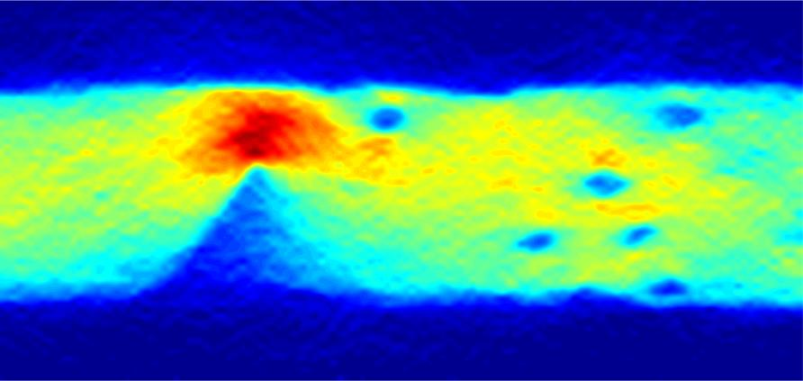 In the race towards faster and smarter next-generation electronics, including quantum computers, researchers at the University of Melbourne are the first in the world to image how electrons move in two-dimensional graphene. Made up of a lattice of carbon atoms only one atom thick, graphene is a key material for the electronics of the future. The ultimately thin carbon material is stronger than steel and due to its flexibility, transparency and ability to conduct electricity, holds great promise for use in solar cells, touch panels and flexible electronics. Now a team led by Professor Lloyd Hollenberg, Deputy Director of the Centre for Quantum Computation and Communication Technology (CQC2T), has used a special quantum probe based on an atomic-sized ‘colour centre’ found only in diamonds to “see” the flow of electric currents in graphene for the first time.  *Image of the electron flow from gold leads to graphene obtained with the diamond quantum sensor, revealing imperfect contacts. Picture: University of Melbourne/cqc2t.org* No one has previously been able to see what is happening with electronic currents in graphene says Professor Hollenberg, who holds the Thomas Baker Chair at the University of Melbourne. According to Professor Hollenberg, this new technique overcomes significant limitations with existing methods for understanding electric currents in devices based on ultra-thin materials. “The ability to see how electric currents are affected by these imperfections will allow researchers to improve the reliability and performance of existing and emerging technologies,” Professor Hollenberg says. “We are very excited by this result, which brings quantum probe-based imaging to the world of graphene nanoelectronics and quantum computers.” Quantum computers will harness the power of atoms and molecules to perform memory and processing tasks, and have the potential to perform certain calculations significantly faster than any conventional computer. But next-generation electronic devices based on ultra-thin materials, including quantum computers, will be especially vulnerable to contain minute cracks and defects that disrupt current flow. The success of the new sensing technique means researchers now have the potential to observe how electrons move in such tiny structures. “These observations could aid our future understanding of how quantum computers will operate, as well as contribute to our understanding of electron behaviour in new and emerging technologies,” Professor Hollenberg says. Lead author Dr Jean-Philippe Tetienne, from CQC2T at the University of Melbourne, explains how the team was able to use diamond to successfully image the current. “Our method is to shine a green laser on the diamond, and see red light arising from the colour centre’s response to an electron’s magnetic field,” he says.  *Artist’s impression of a diamond quantum sensor. The ‘spotlight’ represents light passing through the diamond defect and detecting the movement of electrons. Electrons are shown as red spheres, trailed by red threads that reveal their path through graphene (a single layer of carbon atoms). Picture: David A. Broadway/cqc2t.org* “By analysing the intensity of the red light, we determine the magnetic field created by the electric current and are able to image it, and literally see the effect of material imperfections.” Researchers at CQC2T have led the world in atomic-scale fabrication of nano-electronics in silicon for quantum computers. Like graphene sheets, these nano-electronic structures are essentially only one atom thick. “Our technique is powerful yet relatively simple to implement, which means it could be adopted by researchers and engineers from a wide range of disciplines,” says Dr Tetienne. “Using the magnetic field of moving electrons is an old idea in physics, but this is a novel implementation at the microscale with 21st century applications.” The work is a unique collaboration between diamond-based quantum sensing and graphene researchers. Their complementary expertise was crucial to overcoming technical issues with combining diamond and graphene. “Building a device that combined graphene with the extremely sensitive nitrogen vacancy colour centre in diamond was challenging, but an important advantage of our approach is that it’s non-invasive and robust – we don’t disrupt the current by sensing it in this way”, said Nikolai Dontschuk, a graphene researcher at the University of Melbourne School of Physics. The current-imaging results have been published in the prestigious Science Advances journal and are the culmination of a year’s work. The research is supported with funding from the Australian Research Council through the Centre of Excellence and Laureate Fellowship programs. Banner image: Artist’s impression of the experimental setup for a quantum sensing experiment. The diamond quantum sensor is controlled by lasers. An atomistic representation of graphene (a single layer of carbon atoms) sits atop the sensor. Red lines represent the trajectory of the electrons as they move through the graphene. David A. Broadway/cqc2t.org Original article: http://blogs.unimelb.edu.au/quantum-technology/publications/