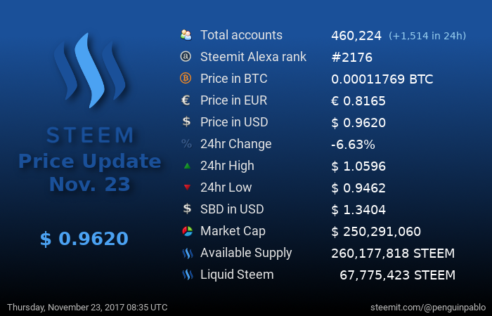 0.000 HBDDaily Steem Stats Report - Thursday, November 23, 2017