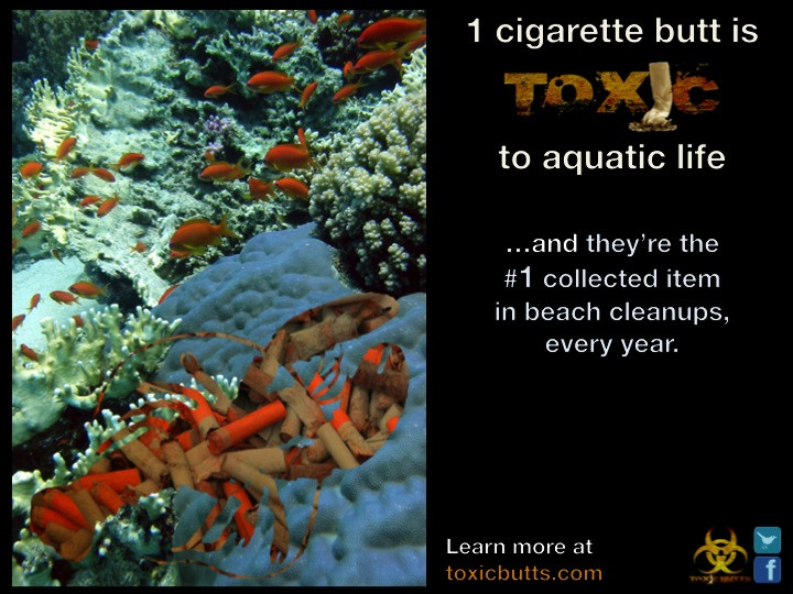 Plastic straw bans are all the rage now (though mostly in places where they would never end up in the ocean anyway), but the primary source of ocean waste is actually cigarette butts. Made from cellulose acetate fibers, which take decades to break down, cigarette filters have become the most littered object in the world, according to The Ocean Conservancy. The group has been sponsoring beach cleanups for 32 years, and reports that butts make up a third of all collected trash, which is no wonder, as over 5 and a half trillion cigarettes are manufactured every year. According to the Cigarette Butt Pollution Project, two thirds of these are littered into the environment, ending up in the ocean through runoff, and eventually in marine life. 30% of turtles and 70% of seabirds were found to be contaminated with the plastic in recent surveys, along with hundreds of chemicals used to treat tobacco. Scientist don't yet know all the ways in which micro-plastics and other tobacco waste products affect animal -and human- health.  Cigarette manufacturers have managed to avoid disposal regulations for the most part, though several groups are hoping to change that. Some lawmakers and environmental groups are pulling for a ban of the filters altogether. They cite a lack of health benefits from using filters, as well as their ubiquity as litter to justify this move. So far though, the only progress has come with tacked-on fees for smokers, like the extra 60 cents San Franciscans pay to defray the costs of clean-up efforts. Filters were introduced around 70 years ago to address health concerns, but in reality are mostly a marketing tool, as research shows the have little effect on preventing inhalation of toxic substances in smoke. In addition, filters are suspected of encouraging people to to inhale more deeply and smoke more frequently.  In efforts to avoid being held responsible for such massive pollution, companies have experimented with biodegradable filters, recycling programs, mass distribution of ashtrays, and large anti-littering campaigns, all to little avail. Most smokers simply prefer to flick their butts, many believing them to be made of a biodegradable material like cotton. Many reported that flicking their butts was part of the ritual, which plays into the rebellious/ defiant nature of smoking that plays a subconscious part of many addictions. Previously attempted alternatives to cellulose acetate filters make the smoke harsher, or less satisfying, according to trial participants, and lack of pressure has left the status quo intact.  A French amusement park recently trained a crows to collect butts and other trash. A San Diego-based startup called Greenbutts is introducing an organic filter that will biodegrade quickly, composed of wood pulp, tencel and Manila hemp bound with a natural starch. The company says it is ready for production, but is counting on the government to incentivize or mandate the use of the product. Government backing faces some large hurdles though, the forefront of which is the massive campaign contributions that politicians receive from cigarette producers. Public support for a ban is growing, so we may yet see cigarette butts replacing plastic straws as a major target for nationwide bans.