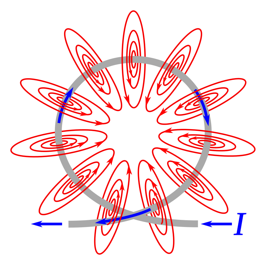Closer to the basics today with an introduction to the inductor, one of the fundamental passive electrical components. An inductor uses a magnetic field to store energy and as such has some interesting properties. The inductor is extremely important for things like filtering, changing voltages, and manipulating magnetic fields.  *Inductor Circuit Symbol* *[Credit](https://commons.wikimedia.org/wiki/File:Inductor.svg)* ## What is an inductor? Inductors are typically nothing more than coils of wire. If you run electrical current through a long, straight wire, a magnetic field will form around the wire, looking something like this:  *[Credit](https://commons.wikimedia.org/wiki/File:Electromagnetism.png)* If you coil up the wire, the field changes. Since the wire is now forming a series of circular loops down the coil, the magnetic field produced by each part of the wire adds in the center of coil, creating a straight-line magnetic field that goes down the center of the coil. Stacking more and more loops makes the field inside the coil closer and closer to a constant field pointing up through the coil. An infinite coil of wire (or solenoid) would have a constant field everywhere inside the coil and no magnetic field at all outside the coil. Since nothing we can make is infinite, the coil will still create a magnetic field outside as well as inside.  *Magnetic field of a loop of wire* *[Credit](https://commons.wikimedia.org/wiki/File:Magnetic_field_of_wire_loop.svg)* But building up that magnetic field within the coil actually stores electrical energy in the newly created magnetic field. As long as the field persists, energy is stored there. Turn off the coil and that energy comes into play. Say you have a coil of wire with current flowing through it. The magnetic field inside the coil has fully built up to its maximum level. Now, disconnect the battery powering the coil. Something called [Faraday's Law of Electromagnetic Induction](https://steemit.com/electromagnetism/@proteus-h/faraday-s-law-of-electromagnetic-induction) now changes the picture. When the battery is disconnected, the current in the coil rapidly drops off. This causes the magnetic field to collapse. But, the collapsing magnetic field is now a *changing* magnetic field. Faraday's Law says that *changing* magnetic flux induces a voltage difference, and in this case, the decreasing magnetic field is certainly causing a change in magnetic flux. The effect of Faraday's Law is that the inductor coil tries to "cancel out" the change in magnetic flux by inducing a current in the coil that tries to prop up the dying magnetic field. What this means is that disconnecting an inductor turns it into its own voltage source, sort of like a weird "battery", for a short period of time. Faraday's Law means that a disconnected inductor will generate a voltage across itself to drive current through the inductor and try to maintain the magnetic field. The field and currents eventually go to zero, of course, but the energy *stored in the magnetic field* is used here to drive currents through the coil. ## What an Inductor Does Faraday's Law gives the inductor a strange property: The voltage generated by an inductor depends on how the current through it changes. The basic inductor equation is given by the following: **V = -L * dI/dt** This just means that the voltage generated by any inductor is equal to the *rate of change* of the electrical current through the coil multiplied by a constant value called "Inductance" (Inductance is usually constant for any given inductor). When you unplug an inductor, the rate of change is current is very high (you just turned it off!). When an inductor is just running current after being plugged in for awhile, dI/dt = 0 since the current is constant.  *Various types of inductors. You can easily find and remove these coils in all kinds of electronics.* *[Credit](https://commons.wikimedia.org/wiki/Inductor#/media/File:Electronic_component_inductors.jpg)* As such, an inductor will produce its own voltage difference when it plugged in or unplugged. The faster you turn on an inductor (or unplug it), the greater the voltage spike will be. This voltage spike can be really high - high enough to ionize air and create a plasma arc (spark gap). This is what happens if you unplug something really fast and hear a crack. Just today I was messing around with a relay (trying to get that transmitter working, which is still a work in progress) oscillator. Since the relay controller is just a giant inductor, when it is turned off every 1/10 of a second a big voltage spike is produced. If I held the relay while it was oscillating and touched one of the inductor pins, I received an annoying shock. This voltage difference can be harmful or annoying (see the relay shock), but it can also be useful. For example, you can make an extremely similar voltage boosting circuit with an inductor and a diode. Press a button over and over to repeatedly cut off current to the inductor to produce large voltage spikes that pass through the diode and charge a capacitor. Actual automatic boost converters use inductors in a similar way to produce larger voltages out than in (of course, by conservation of energy, the output current will be correspondingly less). ## Uses for Inductors Other than the aforementioned boost converter, inductors have a few other uses. Taking boost converters to the extreme, they can be used to produce electric arcs, like on the high voltage lighter I took apart previously. Put two inductors around each other and you have a (very crude) *transformer*, a device that can step up (or down) alternating current voltages. A transformer can take 120 Volts AC from your wall and step it down to 5 Volts AC for your USB wall charger, or up to 2000 Volts AC to power the magnetron transmitter in your microwave oven. Transformers are extremely simple ways to change voltages without needing a bunch of supporting circuitry (although you will need