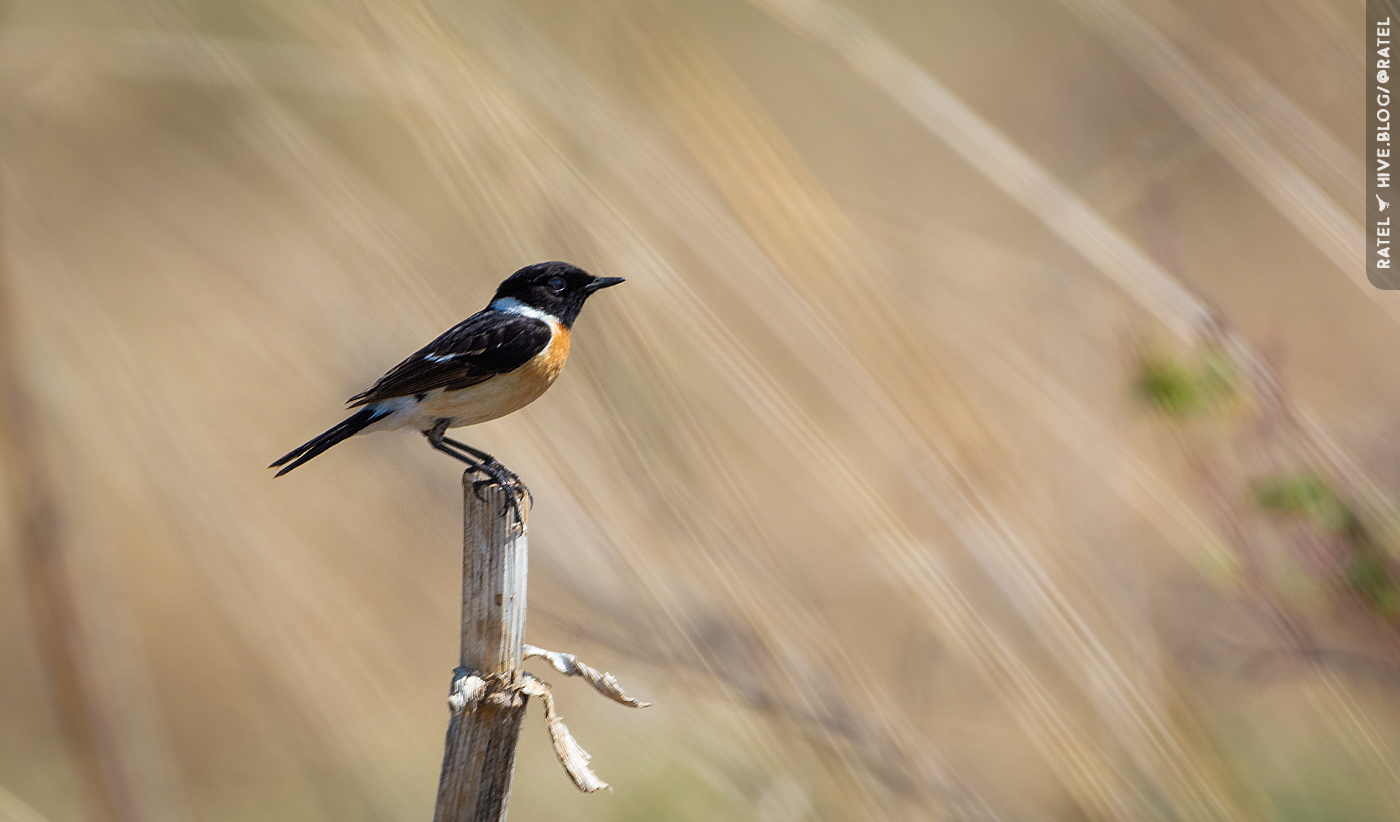 <center></center> ๐ฆ <b> The Siberian stonechat or Asian stonechat (Saxicola maurus)</b> > - Saxicola (lat ): saxum rock, stone, -cola inhabitant > - maurus (lat.): Moorish, black <center></center> These birds love open spaces such as meadows, clearings, and steppes. I even encounter them near forests, where there are only small patches of open space, but that's quite enough for them. Nests are built in a recess in the ground, in a well-hidden area concealed by dense grass. The female builds the nest, while the male guards it, keeping watch over the area. <center></center> In fact, surveying their territory is their favorite pastime, just like meerkats. They constantly climb to the tops of stems or thickets and survey their territory, calling to each other. This makes them easy to photograph. <center></center> |Camera|Lens| |------------|------------| | Nikon D5200 | Sigma 150-600mm F5-6.3 DG OS HSM Contemporary