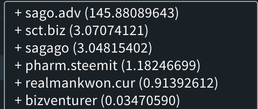 안녕하세요 @realmankwon입니다. 최근에 SAGO의 보상에 대해 포스팅을 한적이 있습니다. 그 이후로 매일 SAGO에 글을 쓰고 댓글을 쓰고 보팅을 하면서 SAGO 의 보상에 대해서 더 많이 느끼고 있습니다. 이렇게 한 이유는 몇가지가 있는데 우선은 저한테 보상이 많이 오는 부분이겠지요. 하지만 그것보다 더 큰 이유는 지인들을 추천하여 데리고 온 이후에 어떻게 하면 빨리 정착시킬 수 있을까가 가장 큰 고민거리였습니다. 며칠 동안의 결과를 보면 저번 포스팅에서도 얘기했지만 뉴비들이 가장 쉽게 다가가고 가장 쉽게 수익을 얻고 그것을 통해 가장 빨리 정착할 수 있는 곳이 아닐까 생각이 됩니다. # 1 . 주제 추천인들이 가장 어려워하는 것 중에 하나는 어떤 글을 써야하는지에 대한 부분이었습니다. 아무것이나 쓰라고는 했지만 막상 글을 써보면 알겠지만 아무거나 쓰라고 했을때 더 쓰기가 어렵습니다. 주입식 교육의 폐해일까요? ^^;; 하지만 SAGO는 일단 주제는 정해진 것이 없지만 포맷이 정해져 있습니다. 질문으로 포스팅을 끝맺으면 됩니다. 어쩌면 생활 속에서 질문거리 하나 만들어 내는 것은 어렵지 않을 것 같거든요. 그렇다 보니 조금은 쉽게 다가가는 것 같습니다. # 2 . 보상 스팀이나 SCOT 토큰 모두 사실 높은 보상을 얻기 위해서는 선투자가 필수적입니다. 물론 여러가지 요인으로 투자없이 높은 보상을 받는 분들도 계시지만 모든 뉴비가 그런 분들처럼 할 수 없는 것이 현실입니다. 그리고 이 점 때문에 다른 글들과 비교를 하게 되는 패턴으로 가게 되고 글을 멈추게 되는 경우가 많습니다. 애초에 목적이 그게 아니었음에도 관심과 호응, 보상 모두가 없기 원동력이 없어지게 되는 것이지요. 하지만 SAGO는 현시점에서는 정말로 매력적인 곳입니다. 열심히 댓글만 달아라도 2~3일이면 100SAGO 이상을 받을 수 있는 곳입니다. 특히나 1일 보상이기 때문에 아주 빨리 모을수가 있습니다. 그리고 100 SAGO를 바로 홍보소각하면서 글을 쓰면 현재까지는 운영진에서 보팅을 해주고 있습니다. 대략적으로 140 SAGO, 17 SCT 정도가 보팅이 됩니다. 아무런 도움없이도 홍보소각 한번이면 저정도의 보상을 받을 수 있는 것입니다. 그러면 다음날 최소 70 SAGO를 다시 받게 되고 3일 뒤면 8SCT 정도를 모을 수 있습니다. 이 패턴으로 한달만 해도 1500 SAGO, 240 SCT 정도는 충분히 모을 수 있을 것으로 생각됩니다. 뉴비 혼자서 처음부터 자립을 하면서 스팀이라는 곳에서 살아갈 수 있다는 것이 참 좋아보입니다. 추가로 스태이킹을 하면 스태이킹 보상이 나오고 보팅을 했을때 큐레이션 보상도 엄청납니다. # 3 . 소통 보상을 받기 위해서라고는 하지만 언제나 글을 쓰면 댓글이 달리고 다른 사람의 글에 댓글도 달면서 어느새 그들과 소통을 하게 됩니다. 물론 현재 SAGO에서 활동하는 유저는 정말 적은 듯 합니다. 댓글을 다는 사람만 달고 글도 거의 쓰는 사람만 씁니다. 하지만 그 글과 그 댓글을 매일 보게 되니 1주일 사이에 그 사람에 대해서 아주 친근하게 느끼지게 됩니다. 이유가 어떻든 소틍을 하게 되고 그 소통을 통해서 이 곳에서 뭔가 모를 정을 느끼게 될 수 있는 확률이 더 높아 보입니다.  최대한 기존의 인프라를 배제하기 위해서 부계정으로 글을 썼을때 느낀 점을 써봤습니다. 그리고 동일 금액은 아니지만 같은 글을 ZZAN, SAGO 에 홍보도 해 보았습니다. - ZZAN (300 ZZAN 소각 - 697.3 ZZAN 보팅)   - SAGO (100 SAGO 소각 - 154 SAGO 보팅)   ZZAN에서는 홍보소각한 것에 대해서 확실히 더 많은 보팅이 들어오는 것 같습니다. SAGO는 그렇지는 않지만 댓글이나 SCT의 보상이 있고 매일매일 보상이 들어오니 확실한 장점입니다. SCT의 경우 소각 룰이 바뀌면서 소각비용이 더 늘어나고 보팅풀에 보팅을 받지 못하면 보전이 되기 힘든 것이 사실입니다. 운영진이라서 조심스러운 말씀이지만 SCT에서 글을 쓰면서 SAGO 든 ZZAN이든 태그를 적절히 사용하시면서 해당 토큰으로 홍보소각을 해가면서 토큰의 생태계에도 도움이 되고 보상도 받으면서 스팀에도 재미를 붙일 수 있는 이 방법을 적극적으로 추천해 드립니다. ^^ 아울러 SAGO 의 경우 첫시작은 대학생이었고 대학생들의 과제 및 취업에도 도움이 되는 방향으로 가도록 생태계를 만들어 나갈 것으로 기대했지만 아직까지는 의도대로 되지 않고 있어 보입니다. SAGO 운영진분들도 제가 포스팅한 내용을 대학생들에게 알리고 SAGO를 얻게하고 그것으로 이벤트에 참여할 수 있도록 유도해 보는 것은 어떨까라는 생각이 듭니다. 암튼 SAGO든 ZZAN 이든 SCT 든 궁극적으로는 스팀에 활기를 돋게 하고 스팀의 가치를 높여서 지금의 힘든 시기를 지나 언젠가 그때 왜 스팀을 하지 않았을까라는 생각을 하는 사람들이 많아지는 날까지 함께 잘 갈 수 있길 바래봅니다. ^^ 굿밤되세요!!!
