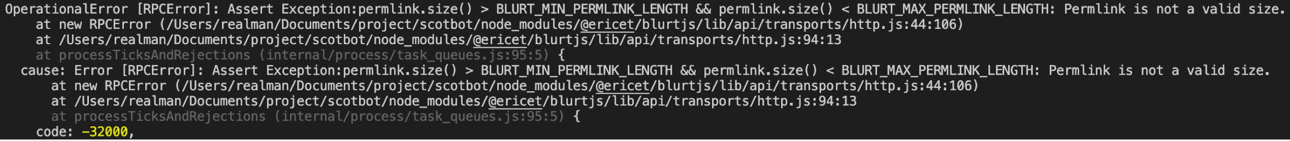 안녕하세요 @realmankwon입니다. 어제 블러트에서 자동보팅하는 기능을 성공하다보니 자동 포스팅 기능도 도전해 보았습니다. 현재도 스팀에서 포스팅을 하면 자동으로 하이브에 포스팅이 되고 있는데 이걸 블러트까지 확장시키는 것이지요. 사실 하이브의 경우는 다운보팅 때문에 포스팅하는 것이 의미가 없지만 블러트는 하이브보다는 덜 할 것 같으니 시도를 해 보았습니다. 처음에는 바로 에러가 뜨더군요.  - Assert Exception:permlink.size() BLIRT_MIN_PERMLINK_LENGTH && BLURT_MAX_PERMLINK_LENGTH: Permlink is not a valid size. 아무리봐도 permlink가 크기가 최대치를 넘은 것처럼 보이지 않았는데 계속 에러가 떠서 메인넷 소스를 확인해 보았습니다.  1 이상 256 미만의 값이니 제가 넣은 permlink는 조건을 만족하는 것 같았습니다. 자동포스팅에 사용된 값을 살펴보니 parent_permlink가 비어 이었습니다. 혹시나 이것 때문인가 싶어서 값을 넣어보니 포스팅이 되는군요. 블러트의 경우 포스팅 및 보팅에도 트랜잭션 fee가 발생하기 때문에 혹시나 포스팅키로 안 될 수도 있을거라 생각했는데 포스팅키로도 메인넷 자체에서 자동으로 피가 잘 빠져나가는군요. 이제는 블러트에도 자동 포스팅을 하여 자동 보팅까지 해봐야겠습니다. 블러트에도 업뷰 서비스를 만들어 봐도 괜찮을 것 같네요 ^^